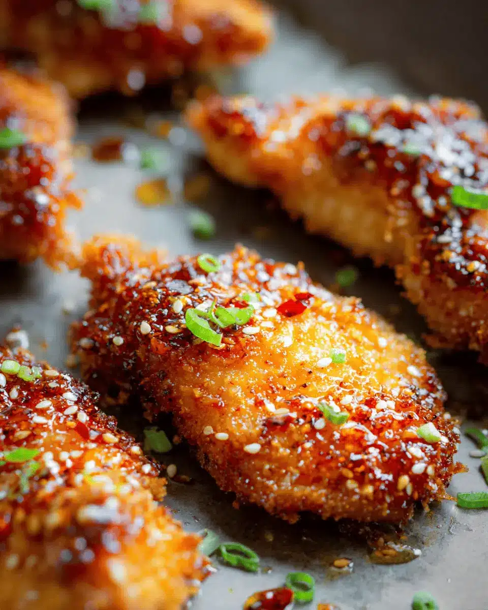 If you're short on any ingredients, don't fret! You can swap out olive oil for avocado oil or use gluten-free breadcrumbs if you need a gluten-free option. For the hot sauce, something like sriracha or a mild chili paste works wonderfully too. If you're looking to adjust the heat level, simply reduce the quantity of red pepper flakes in the hot honey mixture. Remember, cooking is all about improvisation—get creative and adjust to your taste!