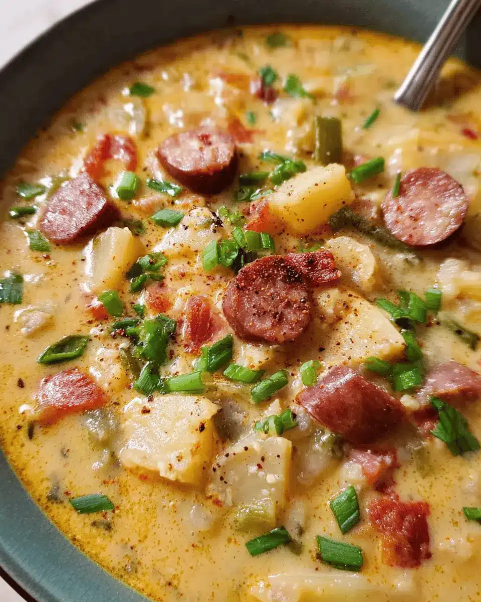 Imagine coming home after a long day, the smell of simmering andouille sausage mingling with aromatic herbs wafting through your kitchen. Not only does this soup warm your body, but it also nourishes the soul. A perfect blend of creamy goodness, tender potatoes, and a kick of Cajun seasoning, you’ll find each spoonful bursting with flavor.