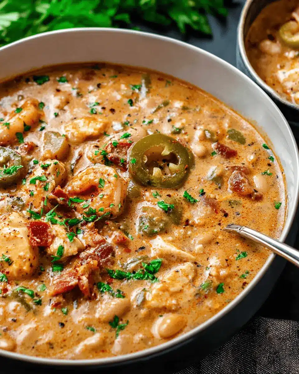 If you've ever found yourself bored with traditional chili recipes, it's time to spice things up with Cajun White Chicken Chili! This vibrant dish brings the heat of Cajun cuisine right into your kitchen, combining the tender flavors of chicken with the smoky richness of andouille sausage and succulent shrimp.