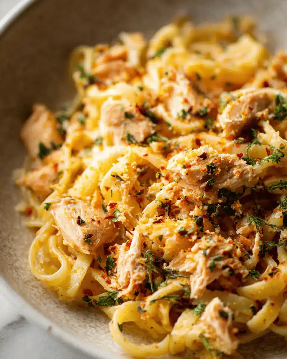 And there you have it! Your delicious canned salmon pasta is ready to be enjoyed. It’s not just a meal; it’s a celebration of simple, fresh ingredients all coming together in harmony. Perfect for impressing a loved one or enjoying a quiet dinner at home. What’s your favorite twist on this recipe?