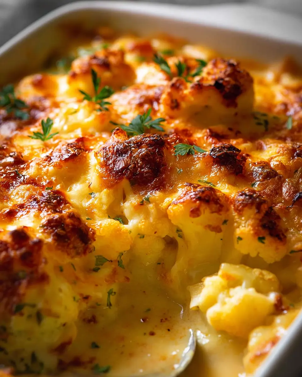 - Bake at 180°C/350°F for 30 minutes until the cheese is melted, and cauliflower is bubbly and golden.