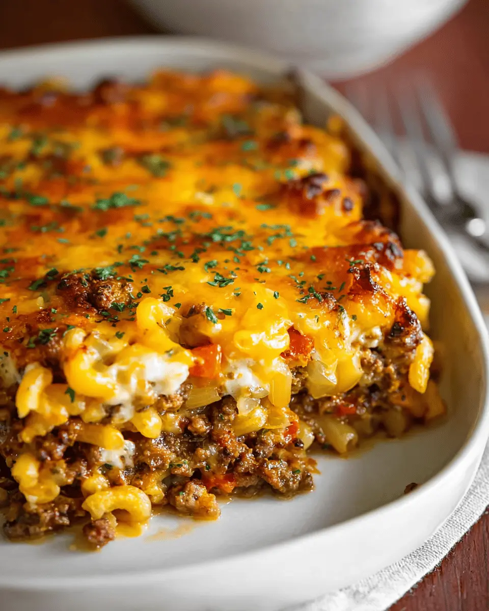 In conclusion, this cheeseburger casserole is the ultimate comfort food that brings together familiar flavors in a delightful way. Perfect for busy weeknights or gatherings, this dish offers both convenience and taste. Don’t forget to save leftovers for easy meals later! Enjoy your culinary adventure!