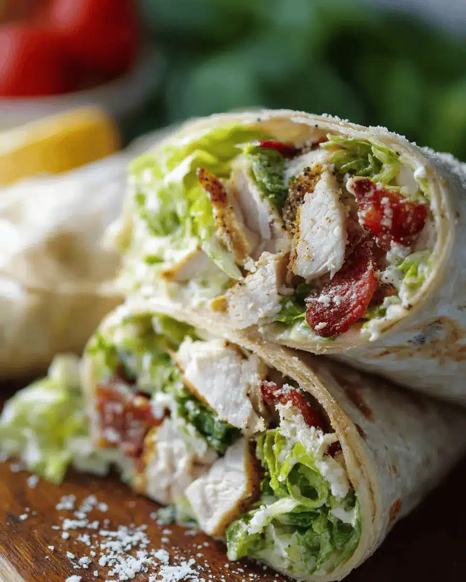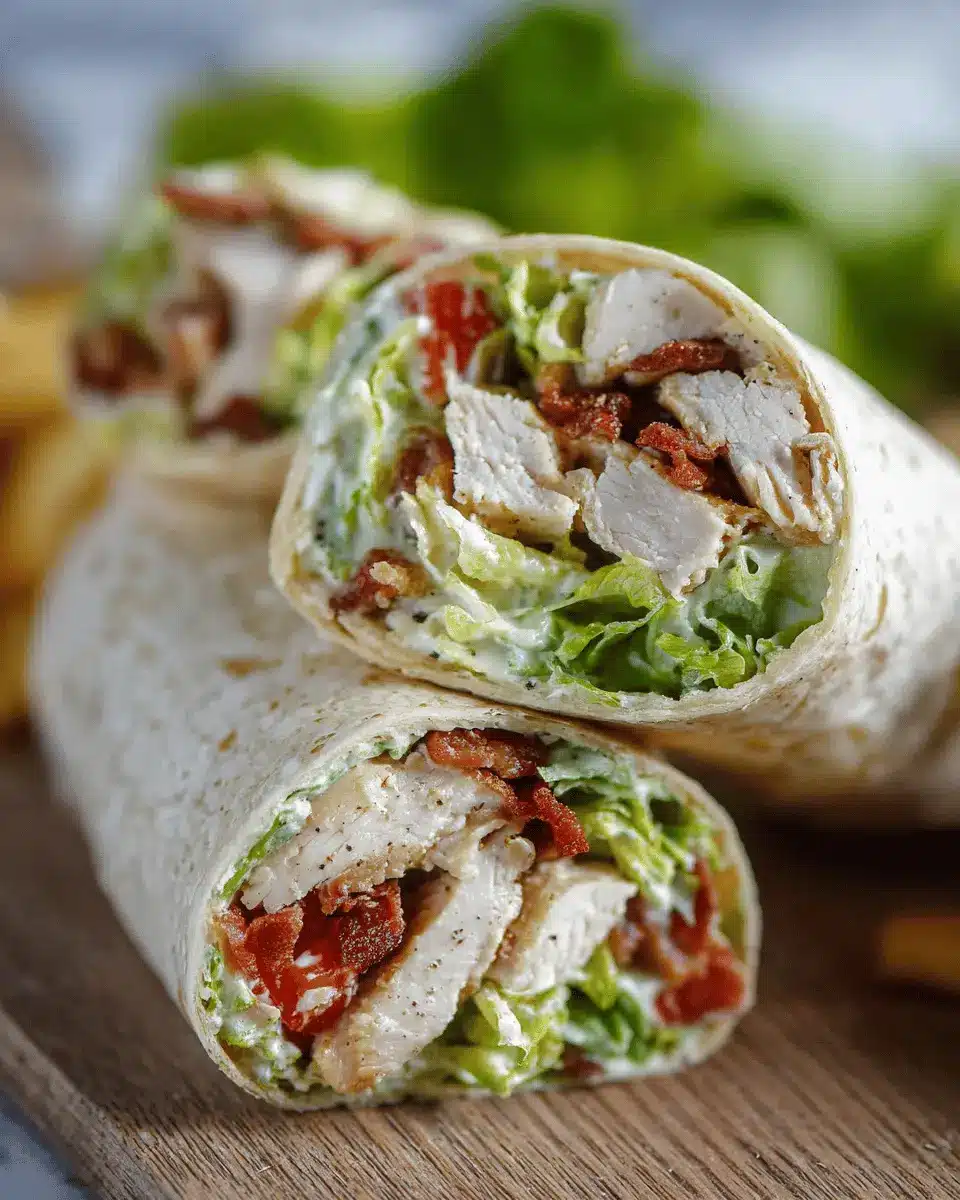 In summary, Chicken Caesar Wraps are a quick and delicious option for your lunch routine. Combining grilled chicken, Turkey bacon, and crunchy romaine with a creamy dressing, they bring flavor and satisfaction in just 10 minutes. Serve them for a stress-free meal that impresses every time. If you love wraps, explore more refreshing variations that suit your taste!