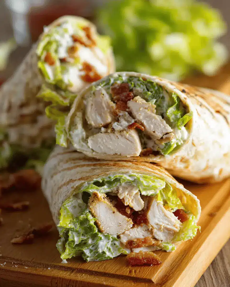 Don’t eat meat? No problem! Swap the shredded chicken for roasted chickpeas or grilled portobello mushrooms for a hearty, veggie-packed option. You can also replace Turkey Bacon with smoked tempeh for that savory, smoky flavor. These Vegetarian Chicken Caesar Wraps are not only tasty but also packed with nutrients, making them perfect for a light lunch or an afternoon snack.