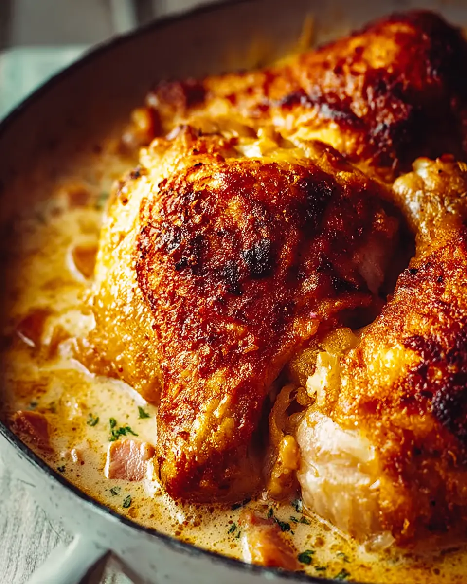 If your sauce seems too thin, let it simmer a bit longer until it thickens to your liking. Alternatively, if it's too thick, add a splash of chicken stock to loosen it. Many home chefs worry about the chicken drying out; to prevent this, always cover your casserole tightly during the oven bake. Lastly, if you can’t find crème fraîche, sour cream works as a similar substitute, giving you that creamy perfection. Happy cooking! For more tips and tricks, check out resources from BBC Good Food and Serious Eats.