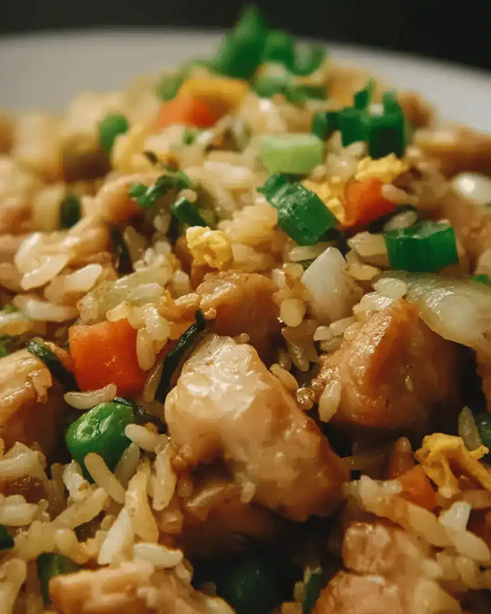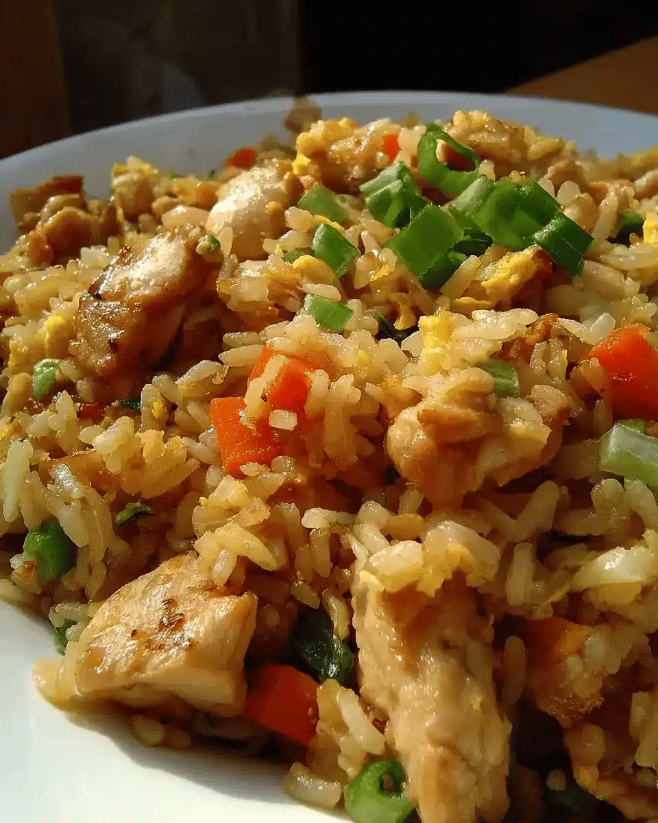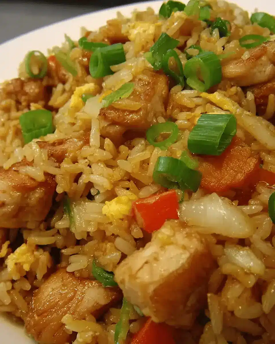 Craving a meatless option? Vegetarian fried rice is your answer! Simply replace the chicken with sautéed tofu or mixed vegetables like broccoli, mushrooms, and snap peas. You can enhance flavors with soy sauce, sesame oil, and a sprinkle of fresh green onions for that satisfying crunch. This dish is not only delicious but also a fantastic way to sneak in extra veggies. Check out this guide on healthy stir-fry options for more ideas!