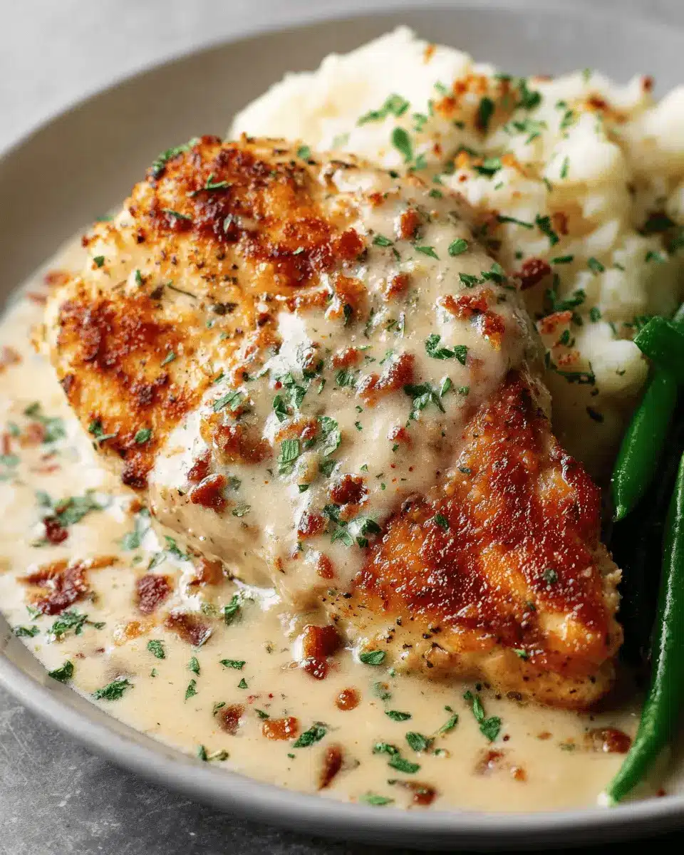 If you're a fan of mushrooms, try this savory twist. Just before adding the cream, sauté sliced mushrooms in the same skillet (after removing the chicken). They add an earthy flavor that complements the creamy garlic sauce beautifully. With this variation, you’ll have a rich umami experience that will impress your guests—and yourself too! You can even sprinkle some fresh thyme on top for an added herbal note. Check out more mushroom recipes here for inspiration!