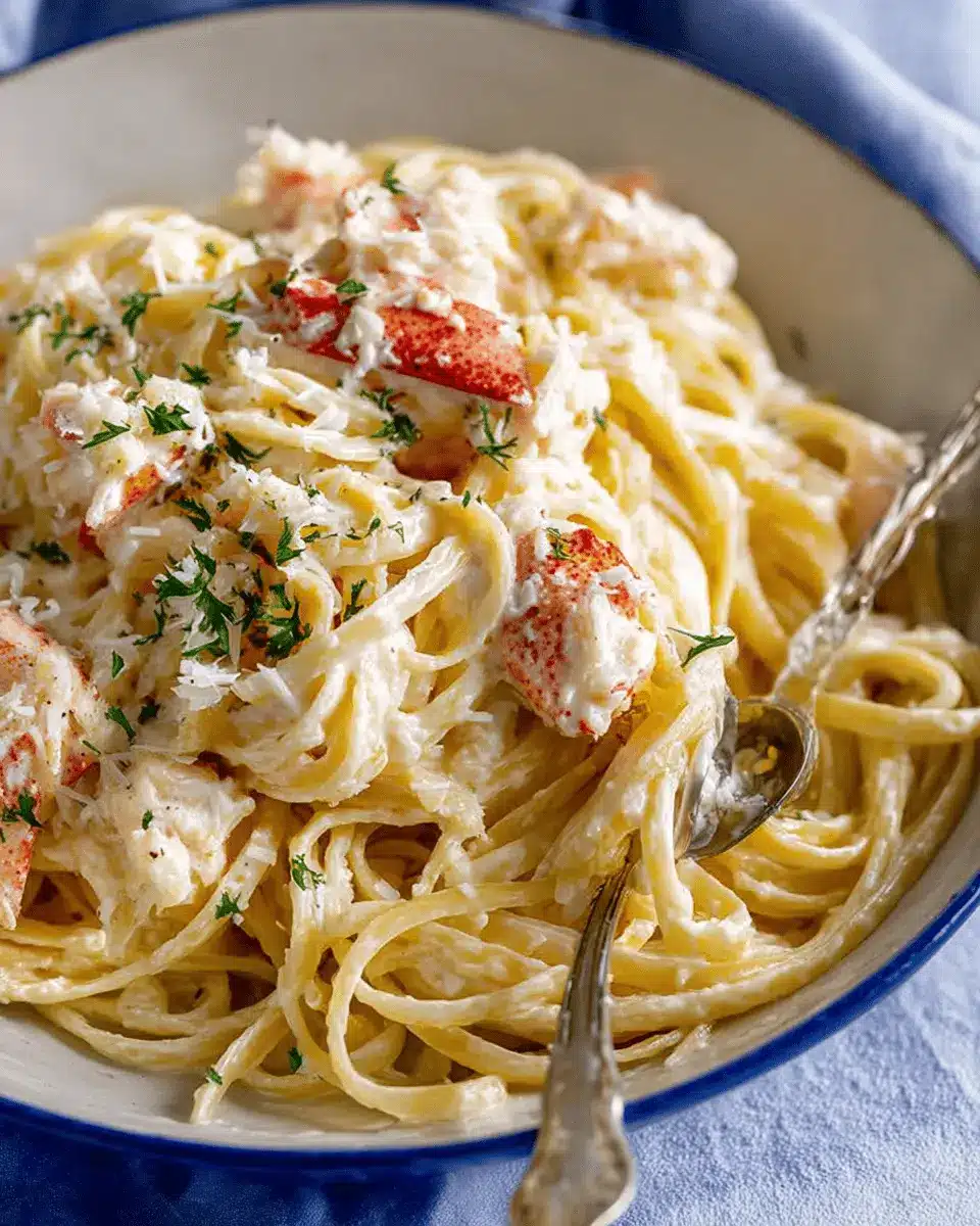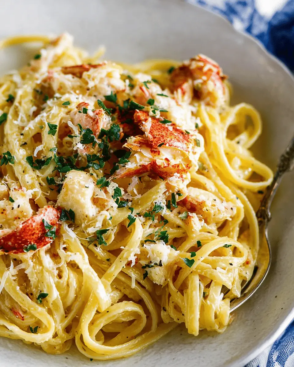 With everything prepped, it’s time for the grand finale. Toss the cooked pasta with the creamy sauce and the lobster chunks. If the sauce seems too thick, add a splash of the reserved pasta water until you achieve that perfect consistency. Taste and adjust the seasoning if necessary, adding more salt, pepper, or lemon juice as you see fit. Finally, serve hot, garnished with freshly chopped chives or dill for that extra pop!
