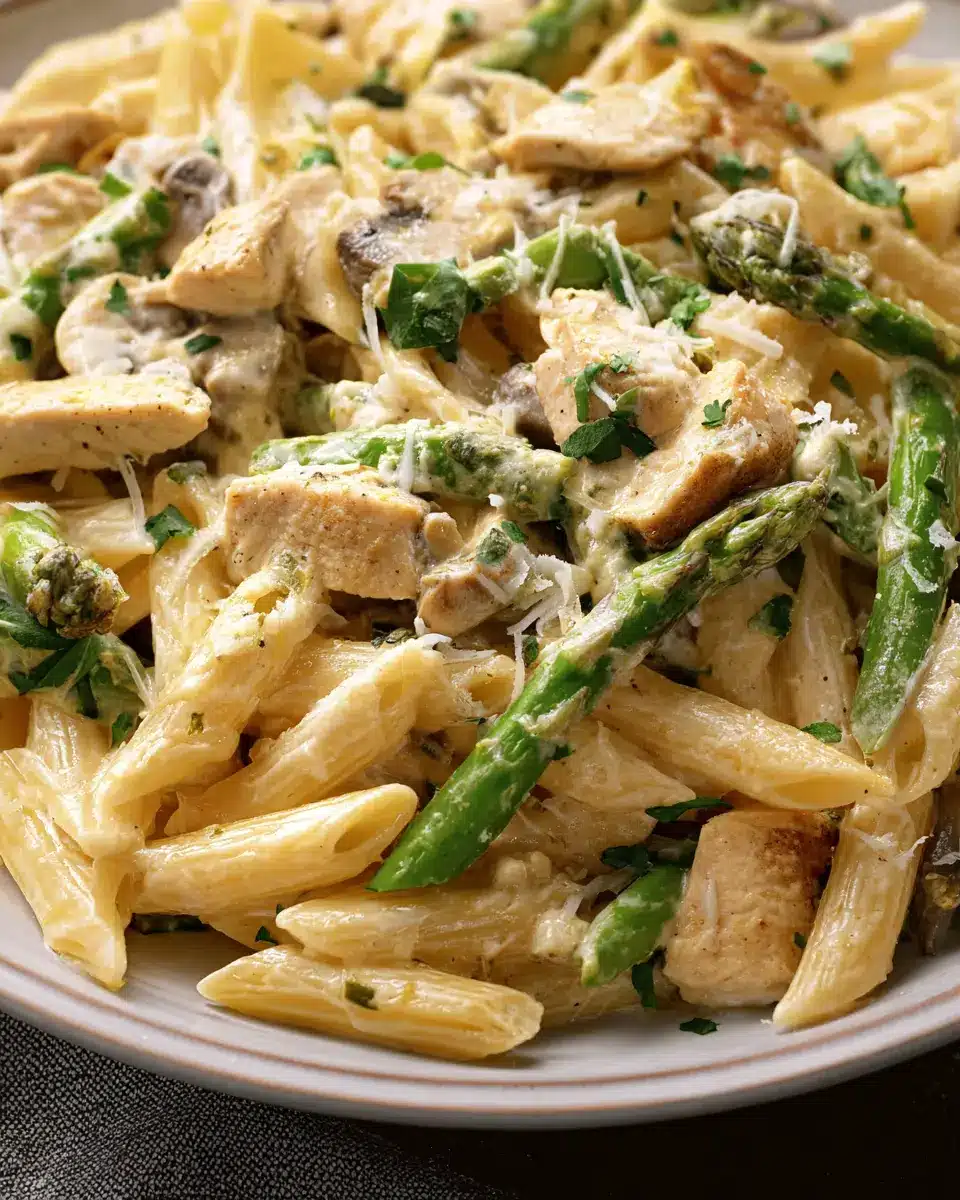 Creamy Mushroom and Asparagus Chicken Penne Recipe