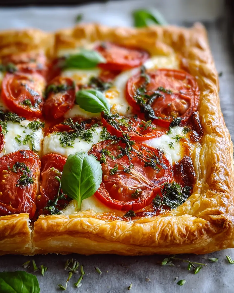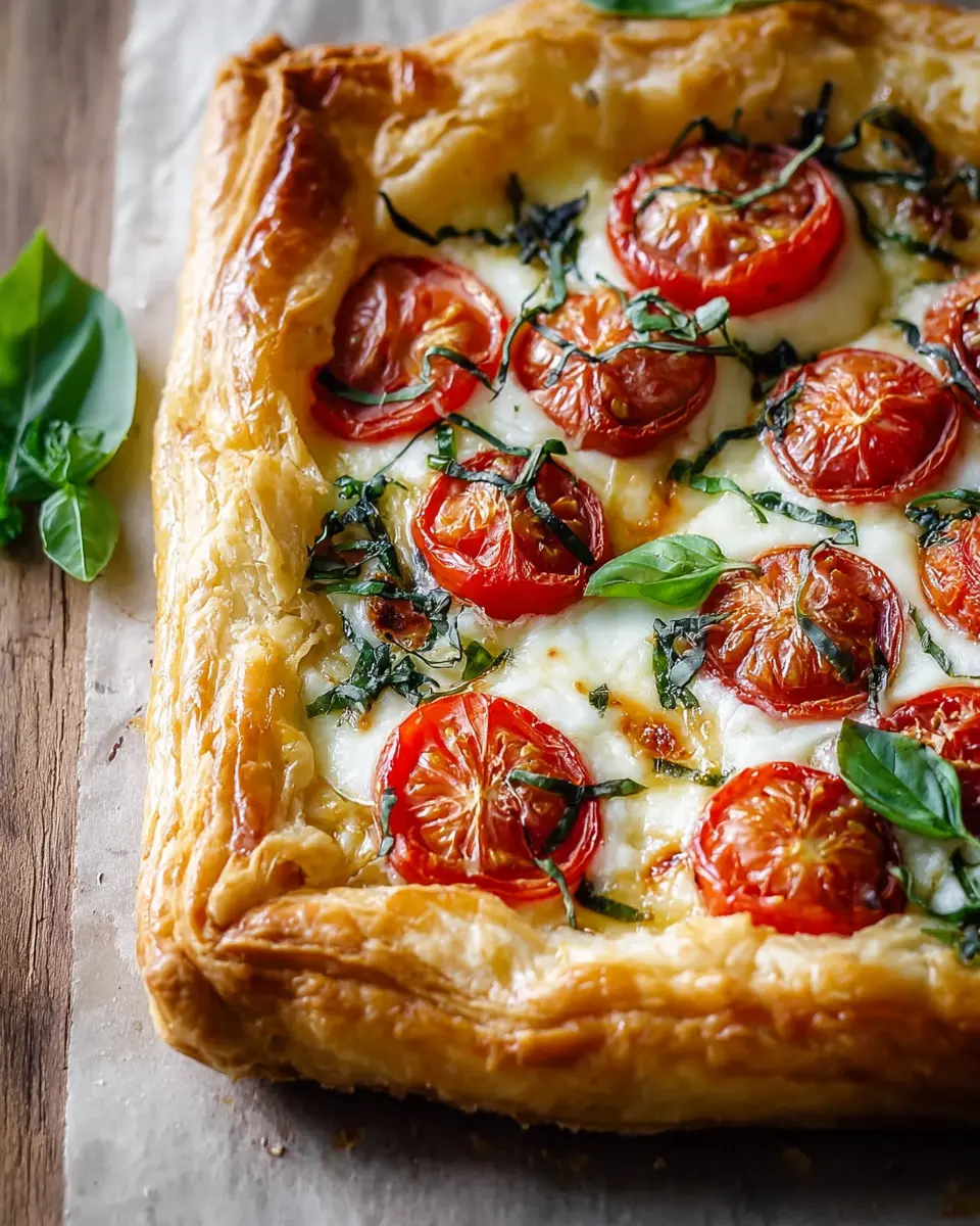In summary, the crispy puff pastry pizza offers a delightful twist on traditional pizza. Its flaky, buttery crust pairs wonderfully with your favorite toppings, making it a versatile dish for any occasion. So, gather your friends or family and enjoy this quick, scrumptious treat today!