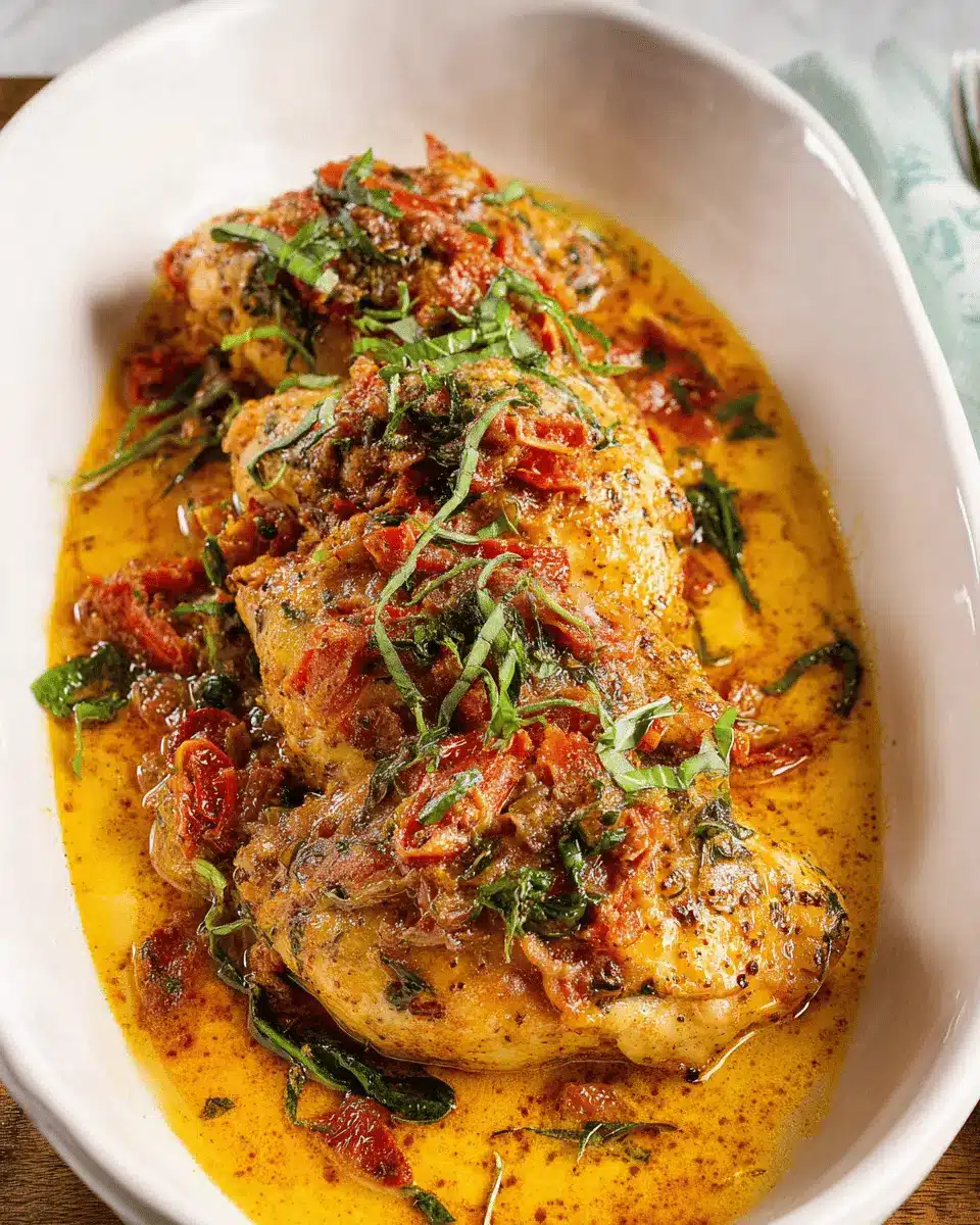 To create a mouthwatering sauce for your Crockpot Tuscan Chicken, don't skip the garlic! Freshly minced garlic adds a robust flavor that pairs beautifully with the creamy sauce. Consider simmering sun-dried tomatoes in olive oil before adding them in—they'll infuse the dish with even more depth. You might also add a splash of lemon juice for a bright finish, balancing the richness of the heavy cream and Parmesan.