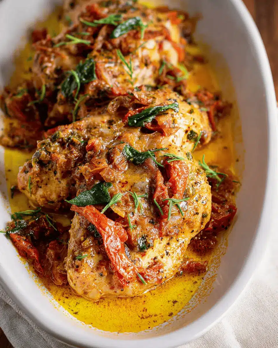 Want to wow your friends with your culinary skills? Serve Crockpot Tuscan Chicken over a bed of wild rice for a stunning presentation. Top it with a sprinkle of fresh herbs and a drizzle of olive oil to enhance its gourmet look. You can also transform leftovers into a fabulous pasta dish—simply shred the chicken and toss it with your favorite noodles! For an elegant touch, serve it in individual ramekins with a sprinkle of Parmesan on top. Your guests will not only be impressed but also satisfied!