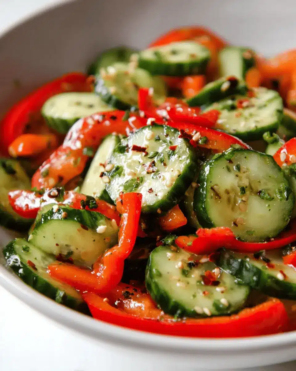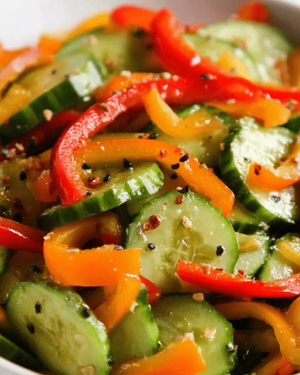 Want to dive deeper into the benefits of using fresh ingredients like cucumbers and sweet peppers? Check out this article on the health benefits of cucumbers, or for more tips on quick meal prep, see this guide.