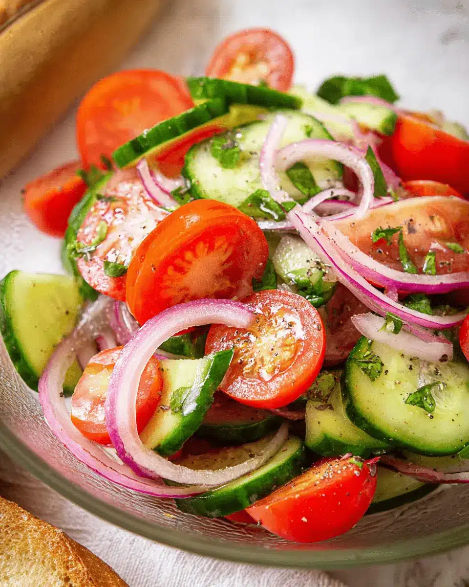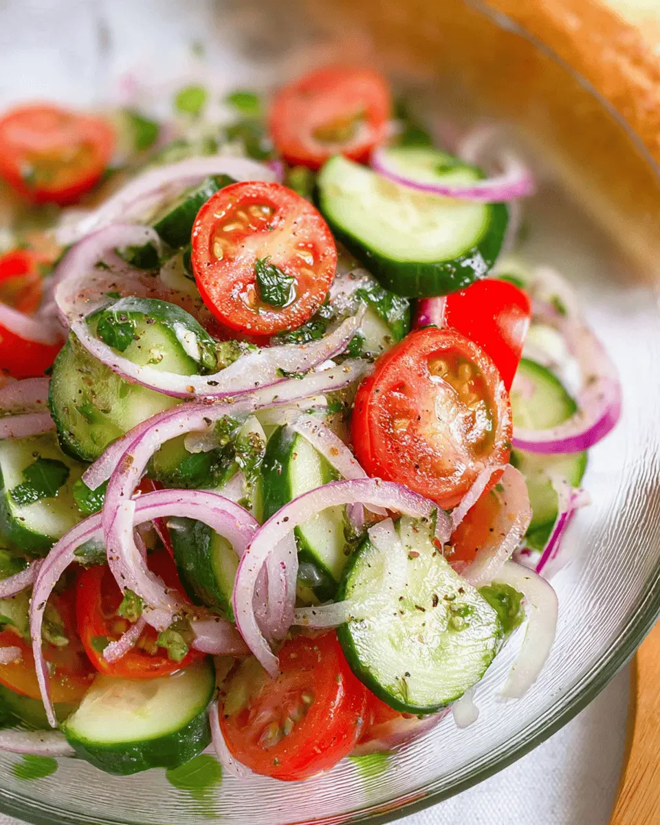 To create a vibrant and refreshing Cucumber Tomato Onion Salad, you’ll need a handful of simple, fresh ingredients. Here’s what you’ll need: