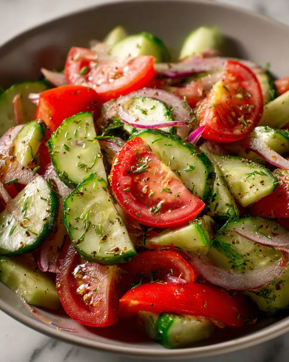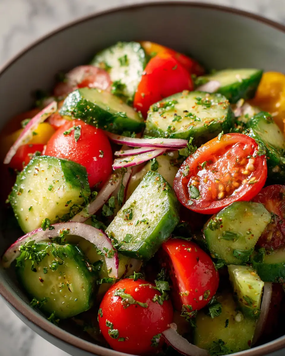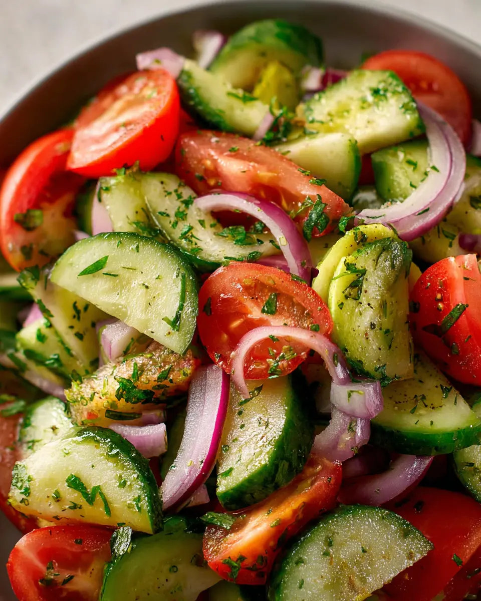 And there you have it—a fresh, vibrant Cucumber Tomato Salad that’s bound to impress! Perfect as a side dish or a quick meal on its own, this recipe is an essential addition to your culinary repertoire. Enjoy this refreshing, nutritious dish, and don’t hesitate to swap in your favorite herbs or add other veggies for variation!