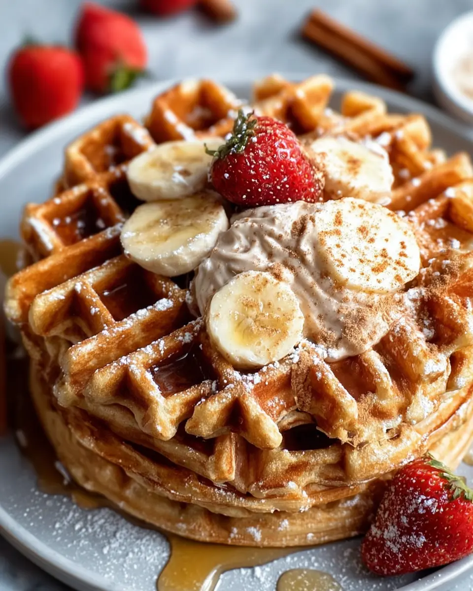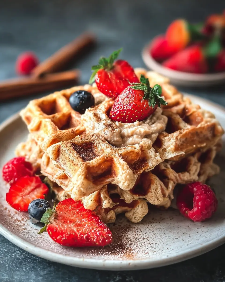 Elevate your delicious oatmeal cinnamon waffles with a variety of mouthwatering toppings. Drizzle warm maple syrup over them for that classic sweetness, or spoon on rich, creamy yogurt for balance. Fresh fruit like sliced bananas, berries, or apples adds a refreshing touch, making your breakfast not only delicious but vibrant and nutritious too.