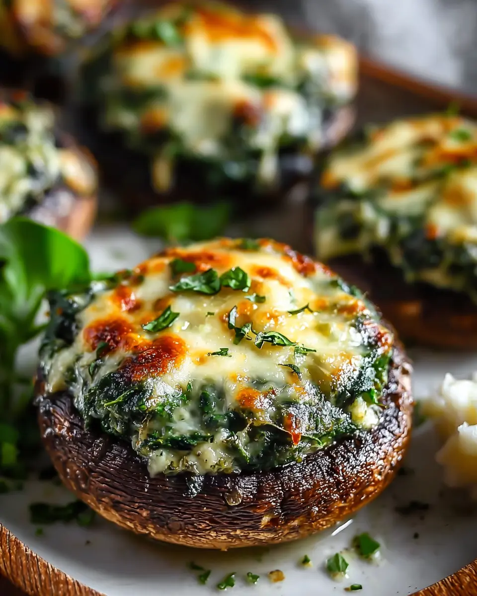 Remember, indulging in delicious spinach and cheese stuffed portobello mushroom bites isn’t just about satisfying your hunger. It’s a delightful way to incorporate more veggies into your diet while enjoying every cheesy, savory bite! Give this recipe a try and impress your friends or treat yourself. Happy cooking!