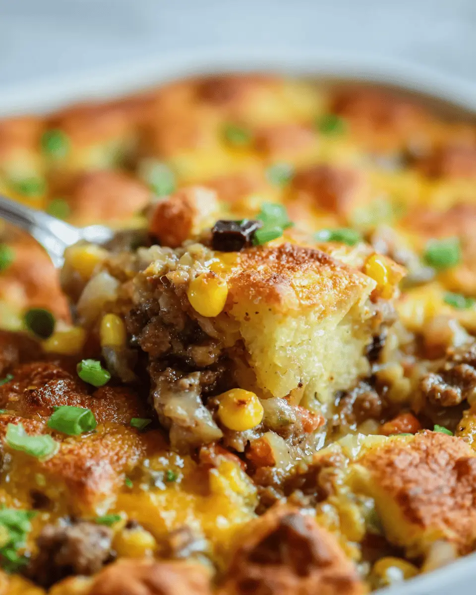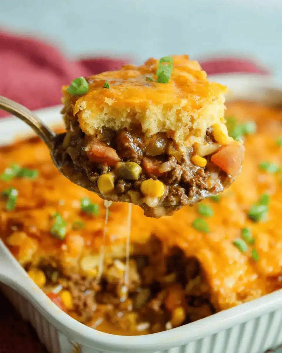 Now, in a 9x9-inch casserole dish, pour the beef mixture evenly across the bottom. Gently spread the cornbread batter on top of the beef. Don’t worry about it being perfect; a little rustic charm adds to the home-cooked feel. Bake in a preheated oven at 400°F for around 20-25 minutes or until the cornbread is golden brown and cooked through.