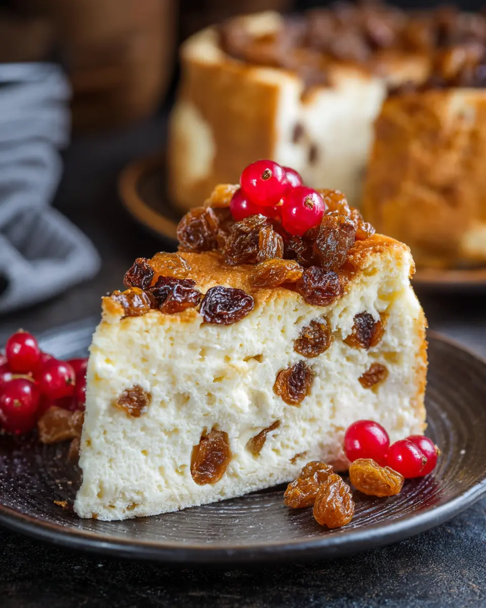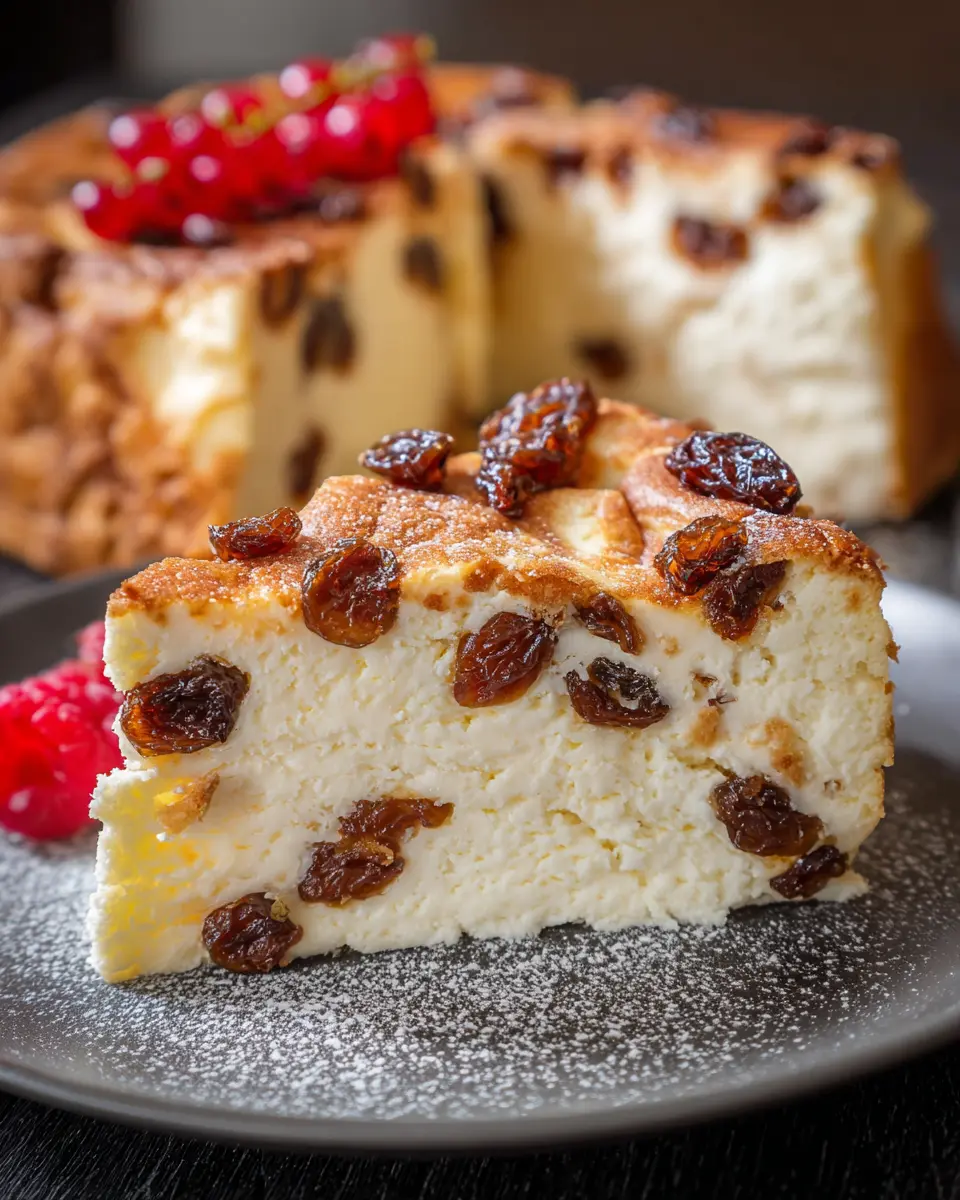 In summary, Farmer’s Cheese Cake with Raisins is an irresistible dessert that combines creamy comfort with the perfect sweetness of raisins. Easy to prepare, it’s ideal for gatherings or a cozy night in. Don’t hesitate; make this delightful cake today! You’ll savor every bite and impress your friends!