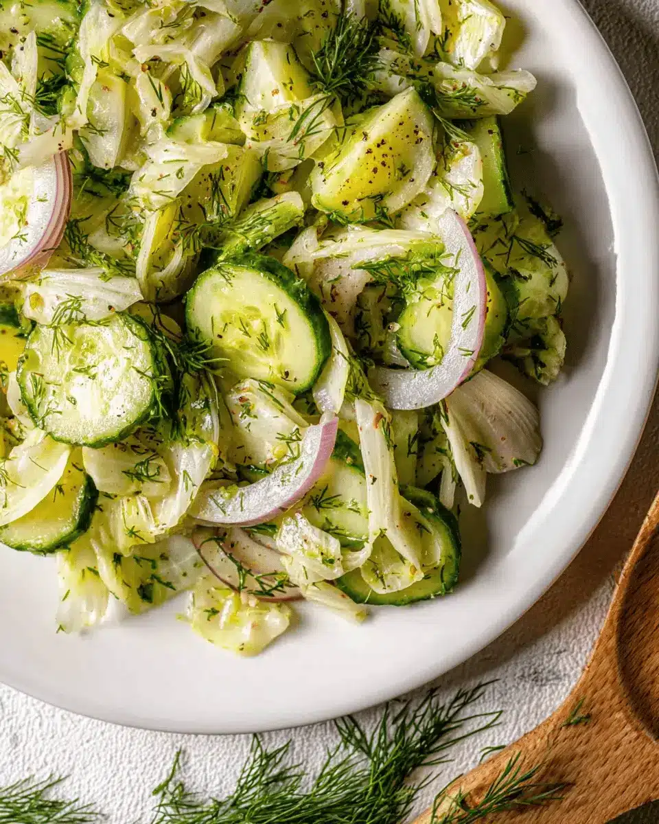 Incorporating this salad into your meal plan not only enhances flavor but also adds health benefits. With the combination of crunchy cucumbers and aromatic fennel, it’s a dish that everyone will enjoy!