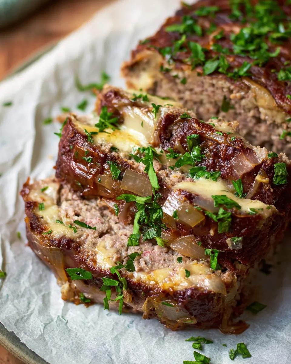 In summary, this French Onion Meatloaf recipe brings a delicious twist to a classic comfort dish. Perfect for family gatherings, it’s packed with flavor, thanks to the caramelized onions and Gruyère cheese. Enjoy every bite, and don’t forget to experiment with leftovers for a delightful lunch!