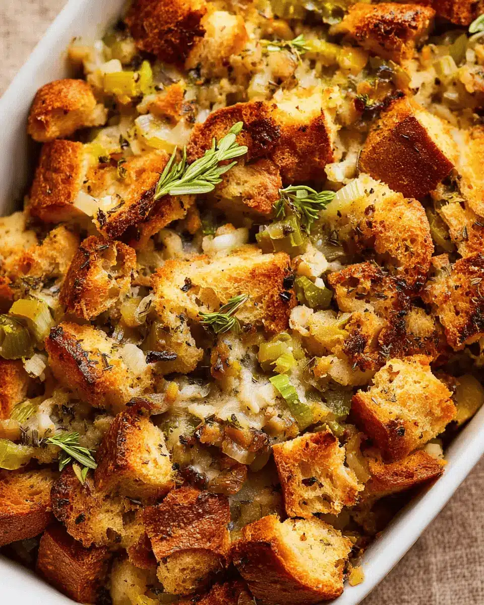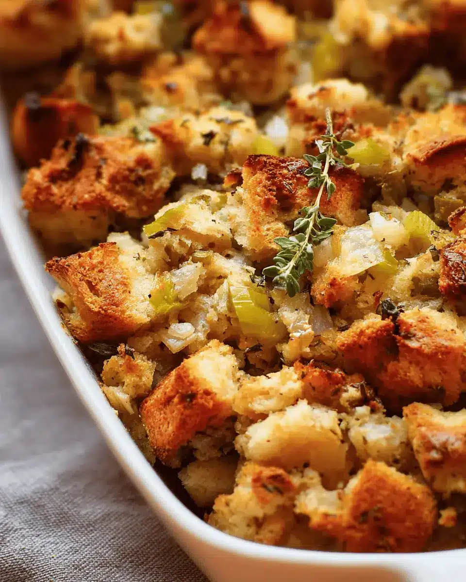 Baking times can vary between ovens, so keep an eye on your stuffing as it bakes. You’re looking for a golden-brown top that’s slightly crispy. If your oven tends to cook unevenly, consider rotating the dish halfway through for consistent results.