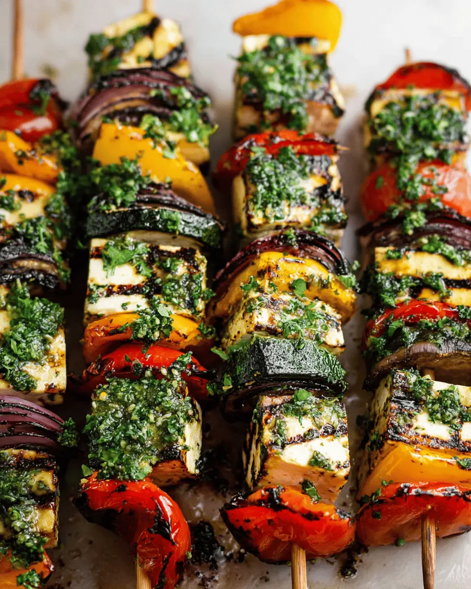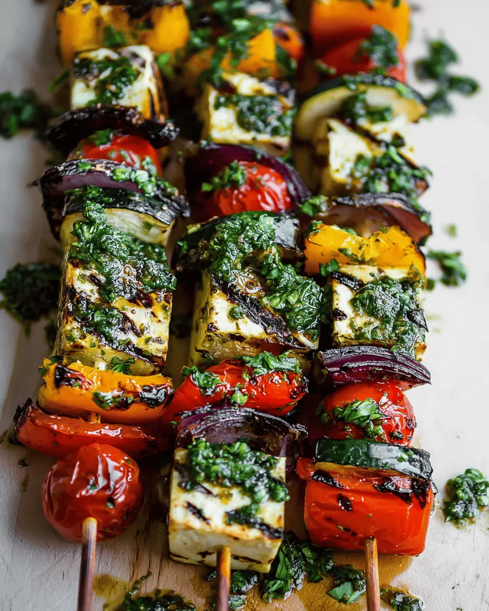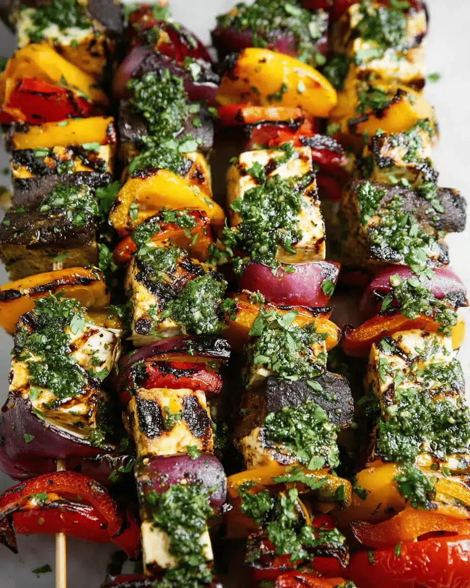 Grilled Vegetable Tofu Skewers with Chimichurri Sauce