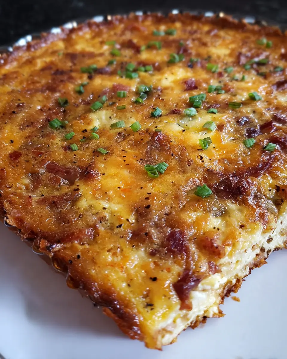 Once your hash brown crust has reached a lovely golden brown, it’s time to assemble your hash brown crust turkey bacon quiche. Gently sprinkle the turkey bacon into the crust, followed by a generous layer of shredded Cheddar and mozzarella cheese. Pour the creamy egg mixture evenly over the top—this is the literal “meat” of your dish, filling it with richness and flavor.