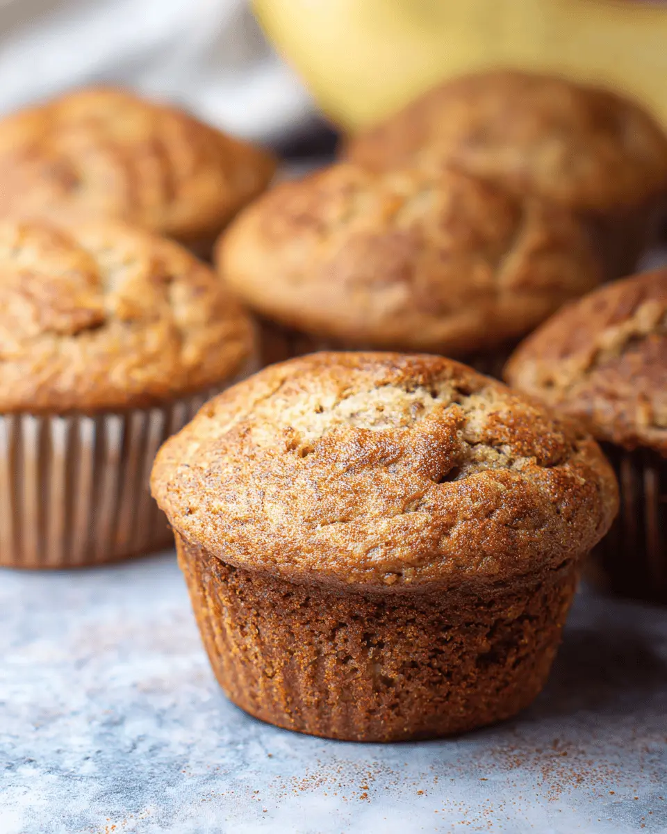 - Mashed Ripe Banana: 1 cup (about 3 medium bananas), which not only provides flavor but also keeps the muffins moist.
