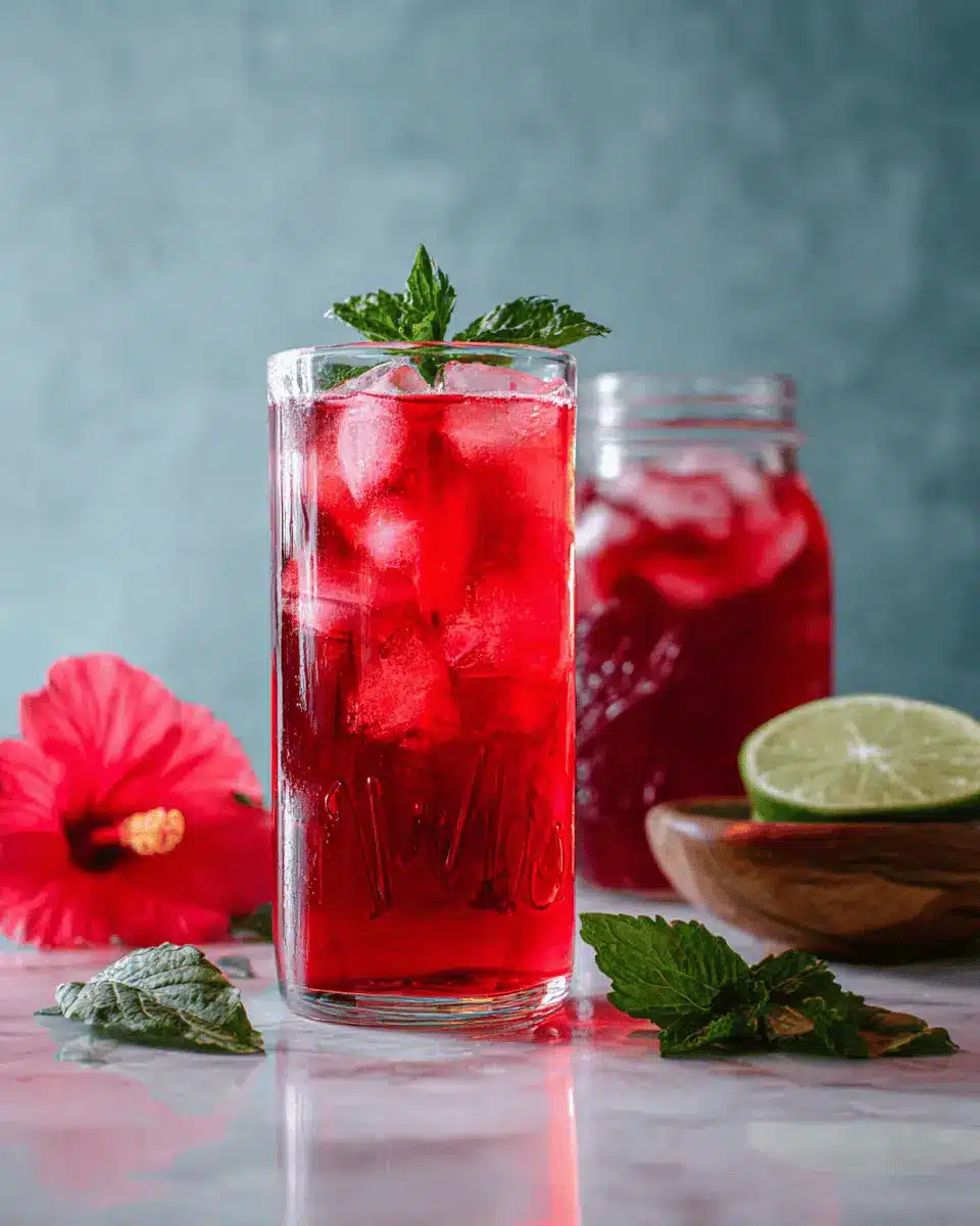 If you're craving a refreshing twist, try blending your Hibiscus Iced Tea with lemonade. The tartness of the hibiscus pairs beautifully with the zesty sweetness of lemonade, creating a bright and invigorating drink. Simply replace the apple juice in the main recipe with fresh lemonade for a delightful summer sip. You might even experiment with flavored lemonades for a unique flair!