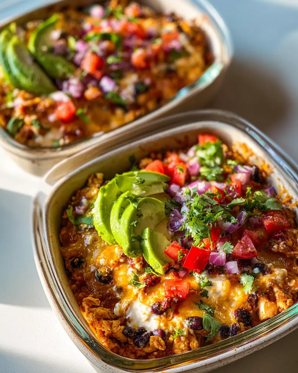 Finally, it’s time to present your creation! Remove the bowls from the microwave and garnish generously with chopped cilantro, creamy avocado slices, and a dollop of Greek yogurt or sour cream. These toppings not only enhance the appearance of your dish but also complement the flavors beautifully.
