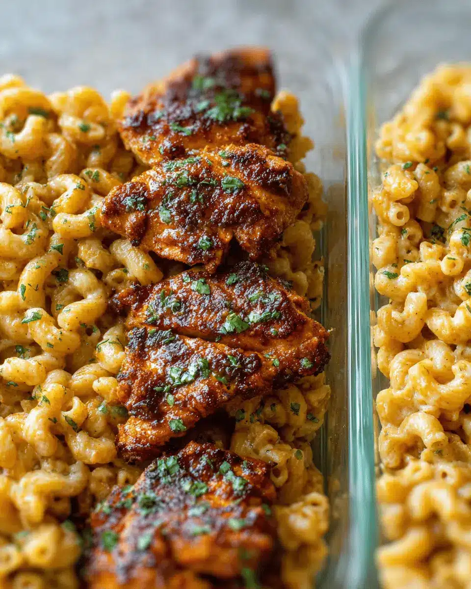 High Protein Honey Garlic Butter Chicken with Mac & Cheese