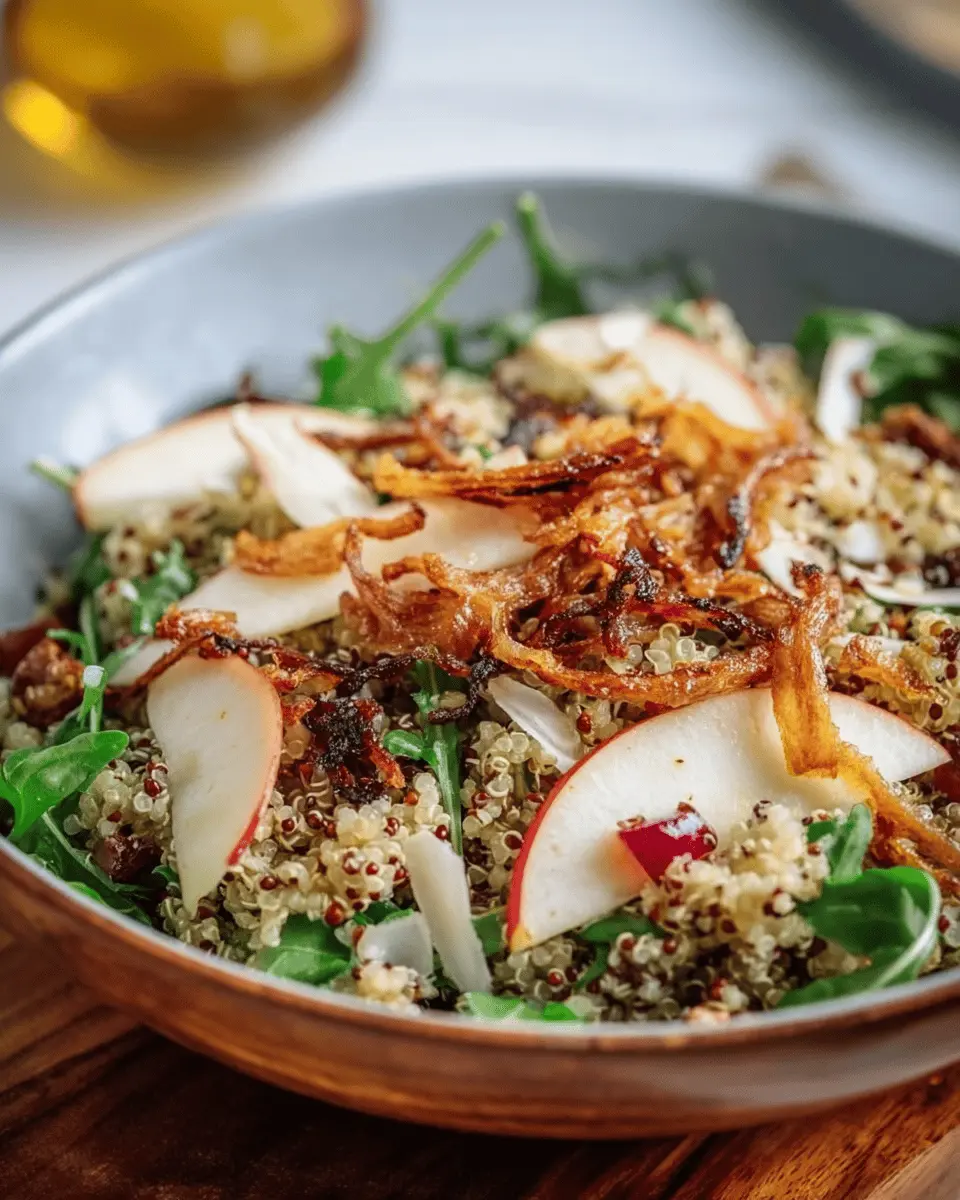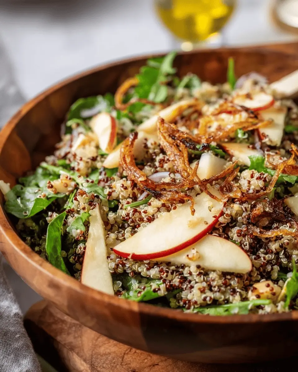 Honey Mustard Quinoa Apple Salad with Crispy Shallots Recipe