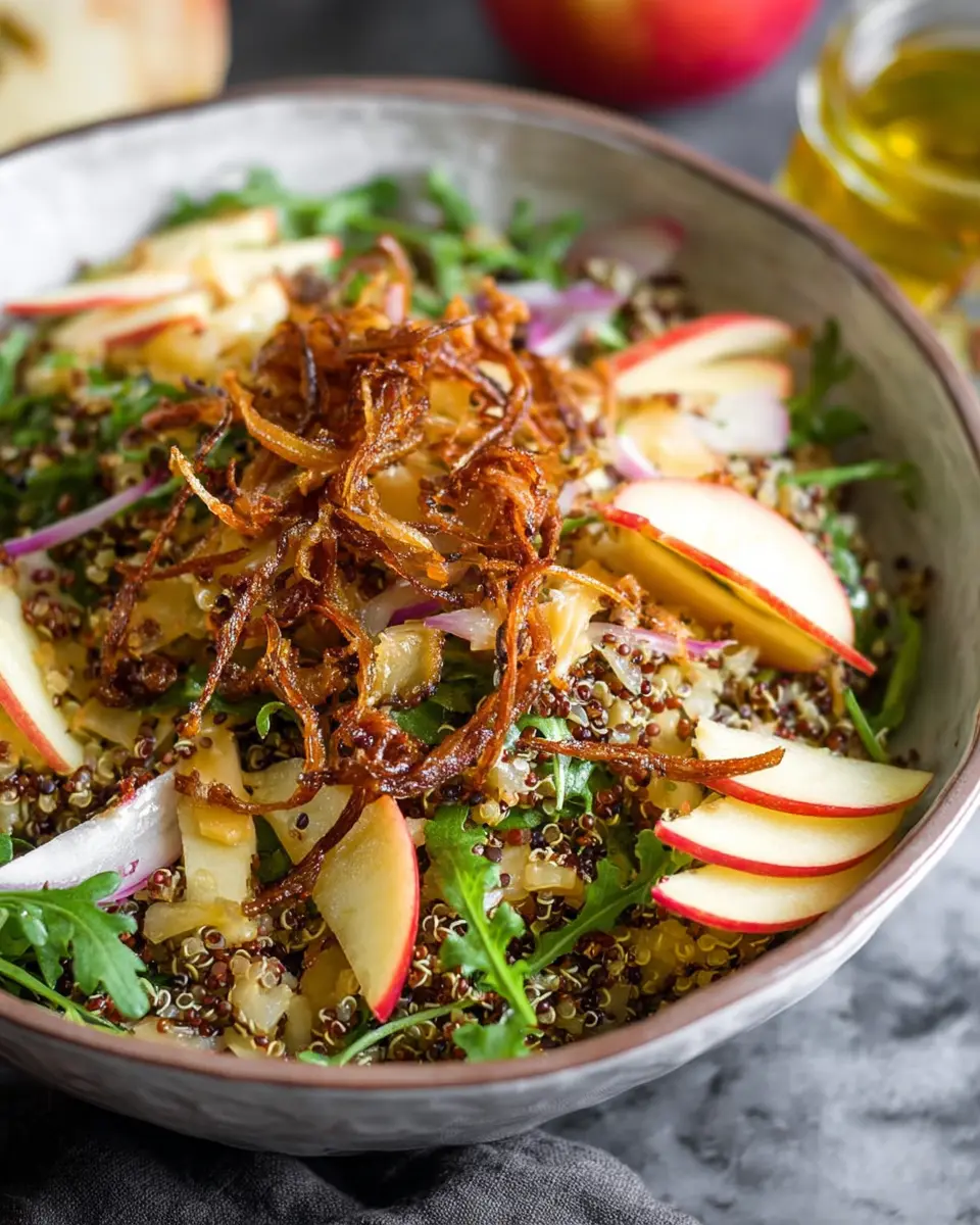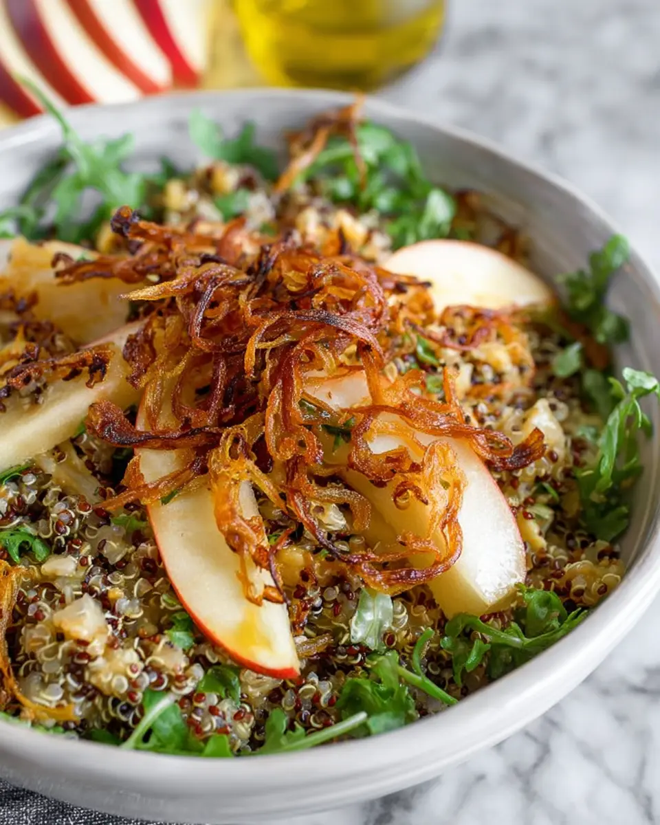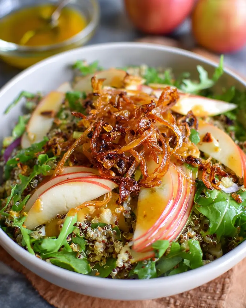 Honey Mustard Quinoa Apple Salad with Crispy Shallots