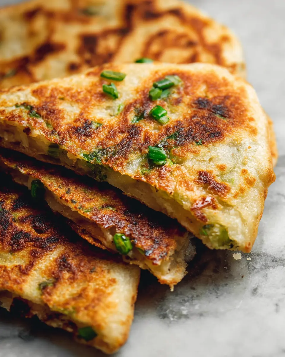 Once your potatoes are cool, it’s time to combine them with your dry ingredients. In a large bowl, add 75g of all-purpose flour, 1 teaspoon each of baking powder and baking soda, along with sliced green onions. This is the part where your kitchen will start smelling delicious! Gently mix these ingredients into the mashed potatoes, aiming to form a cohesive dough. If the mixture is too dry, a splash of milk can help bring it together; on the other hand, if it's too wet, sprinkle in a bit more flour until it feels right.