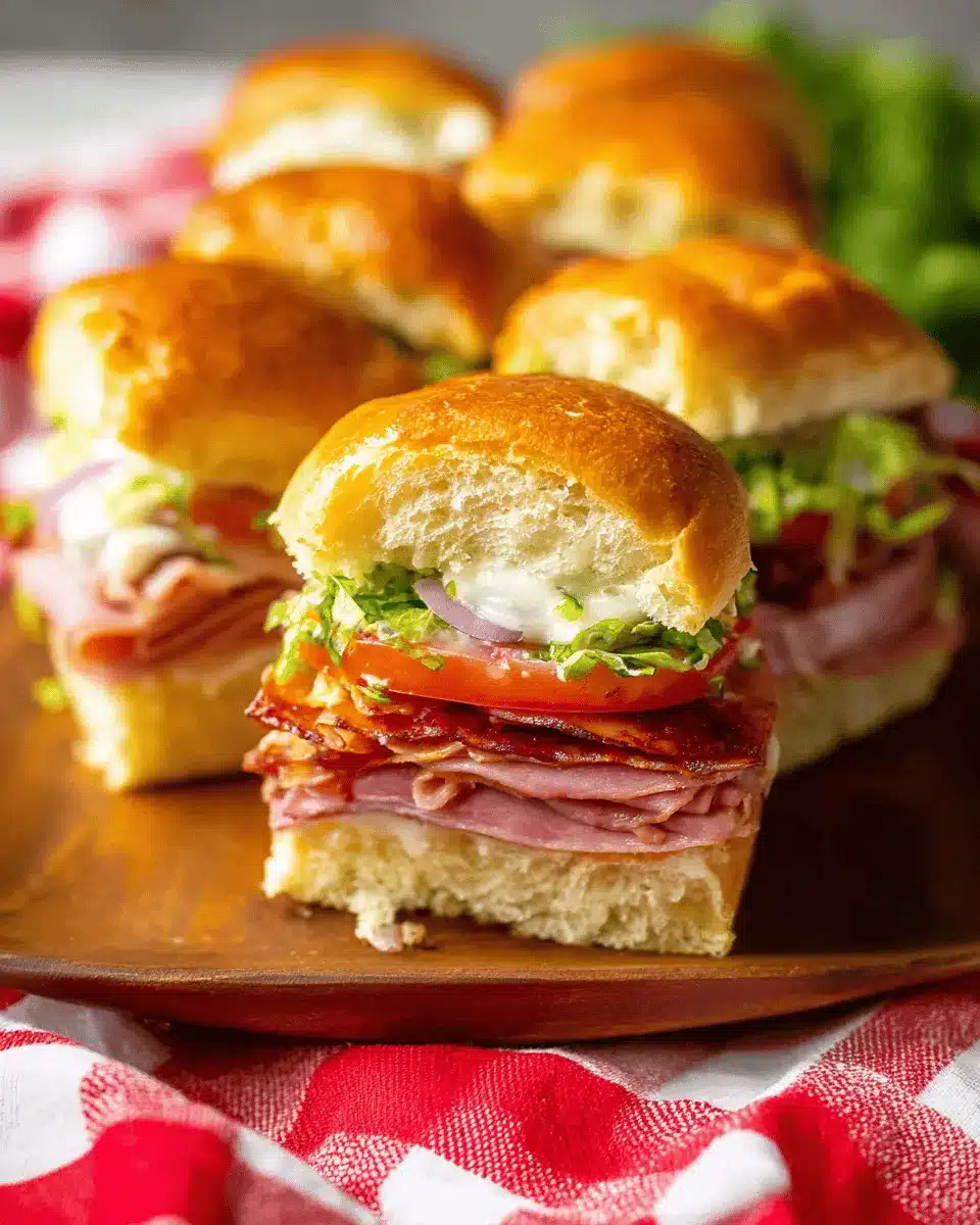 In summary, these Italian Sub Sliders offer a delicious blend of flavors and textures that make them an ideal choice for any gathering or casual meal. The combination of chicken ham, salami, and provolone, paired with the crunchy lettuce mix, creates a delightful experience for your taste buds.