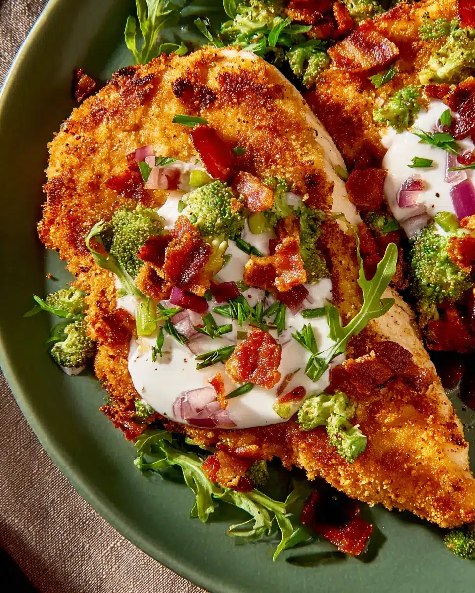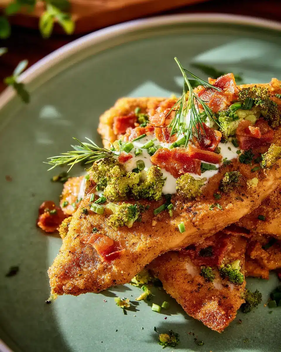 Sprinkle the remaining Cheddar over everything and pop it under the broiler for an additional 2 minutes. Watch closely as the cheese becomes bubbly and beautifully golden. When you take the cutlets out, don’t forget to top them off with a dollop of sour cream, crispy turkey bacon bits, and a sprinkle of sliced scallions.