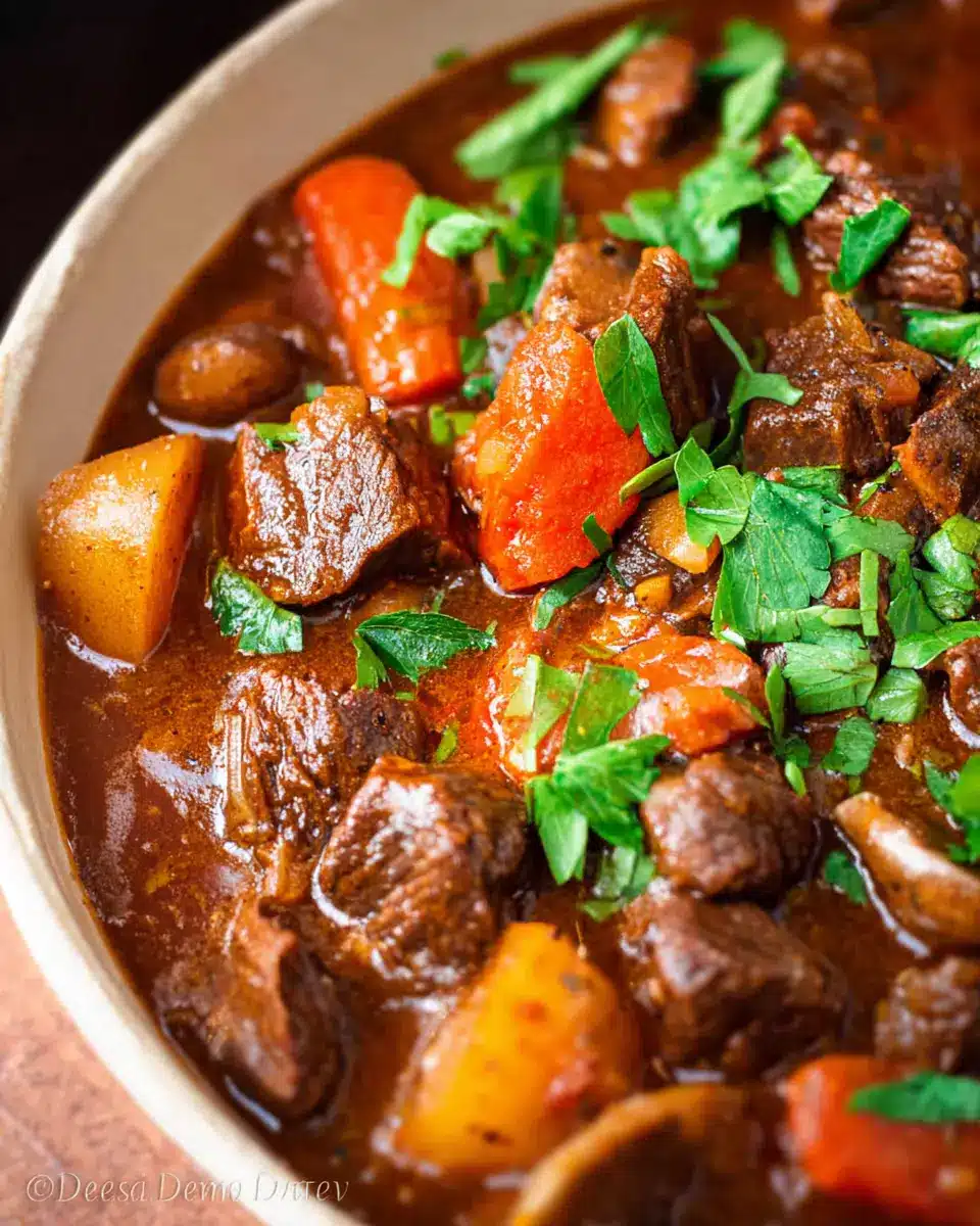 - Sprinkle some parsley and serve the stew with mashed potatoes.