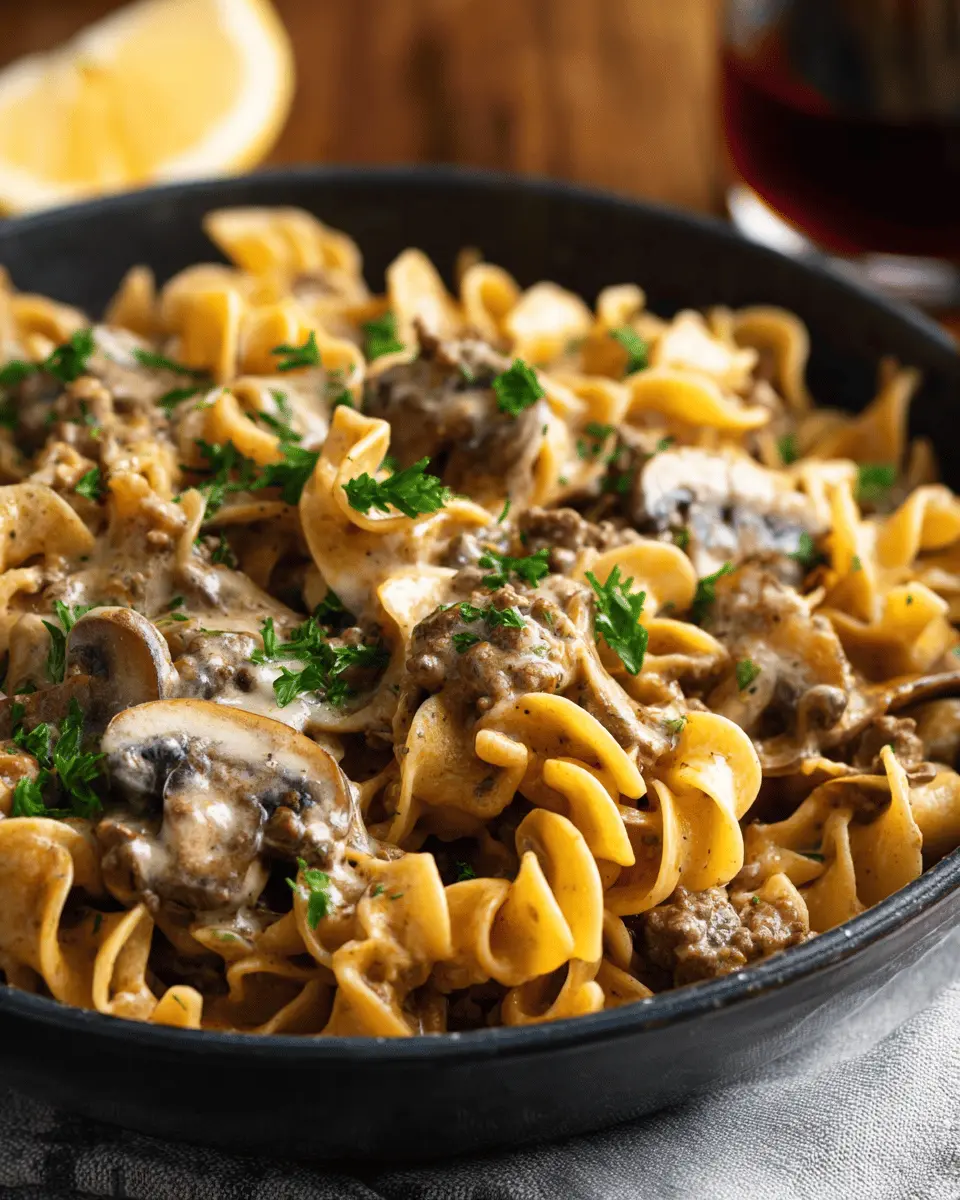 One Pan Ground Beef Stroganoff