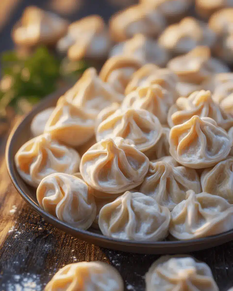 Shaping by Hand: If you don’t have a mold, fear not! Roll out the dough and cut circles with a cookie cutter. Place a small amount of filling in the center, fold it over to form a half-moon shape, and pinch the edges to seal. For a decorative touch, connect the two corners for that signature pelmeni look!