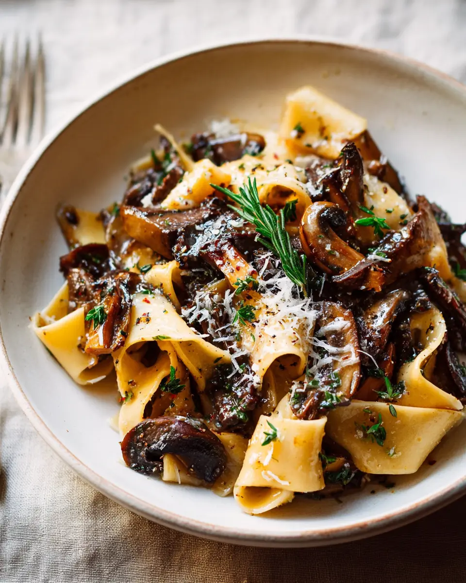 Health benefits: Aside from being incredibly delicious, mushrooms are low in calories and high in nutrients, including antioxidants and essential vitamins. Incorporating pappardelle into your diet can also provide a hearty dose of comfort food that fits well into a balanced lifestyle.