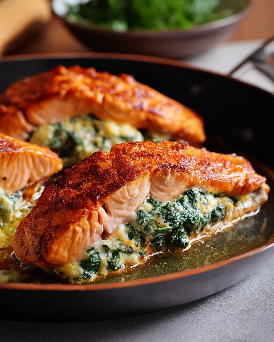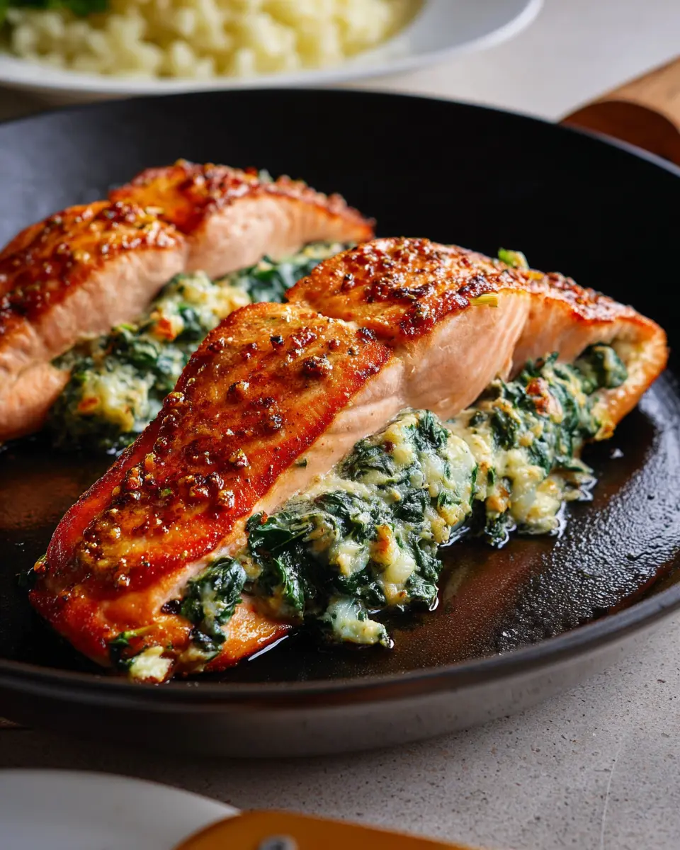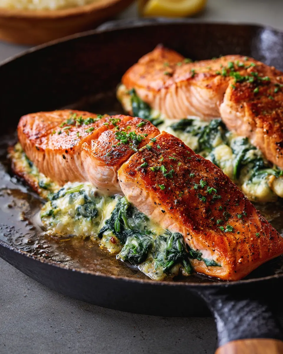 Quick-Broiled Creamy Spinach Stuffed Salmon