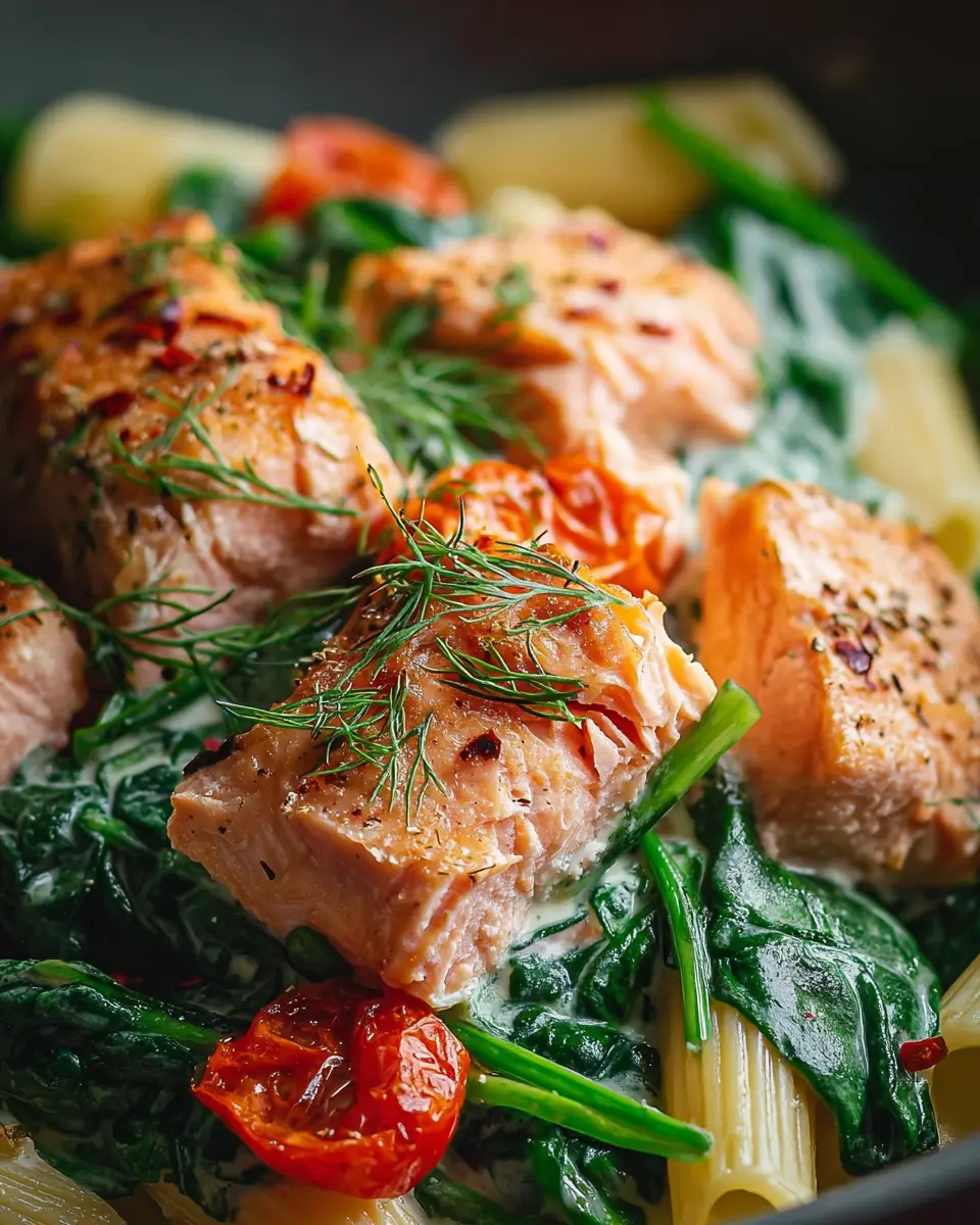 If you're seeking a quick, nutritious, and flavorful meal, quick salmon spinach pasta is the answer. Packed with protein and heart-healthy fats, this dish is not only easy to prepare but also beautifully balances taste and health. Dive into this culinary delight tonight and enjoy every bite!