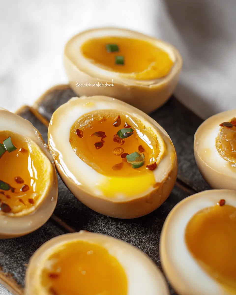 If you crave a little heat, try adding chili paste or sriracha to your marinade! This variation incorporates a few teaspoons of your favorite spicy sauce, infusing the ramen eggs with a delightful kick. Simply follow the same marinating process, and soon you'll have perfectly soft-boiled eggs bursting with flavor. Pair them with a ramen bowl for an extra spicy delight!