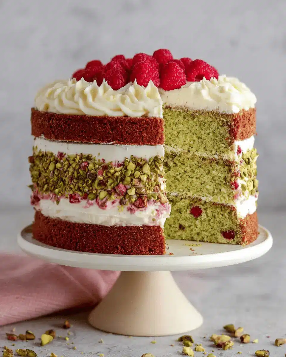 Raspberry Pistachio Cake with Mascarpone Buttercream