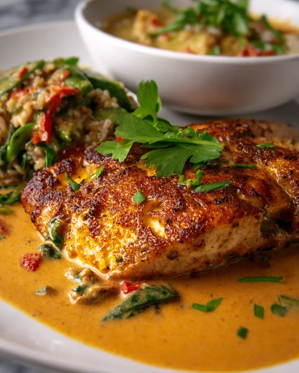 - Creamy Creole Sauce Ingredients: Heavy cream, chicken broth, tomato paste, and fresh parsley, along with bell peppers, onions, and optional diced tomatoes.
