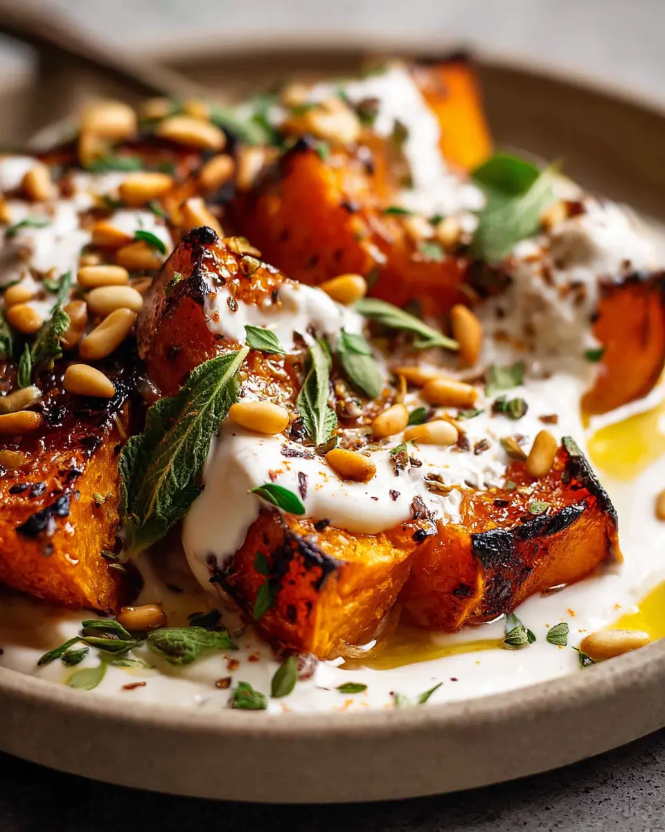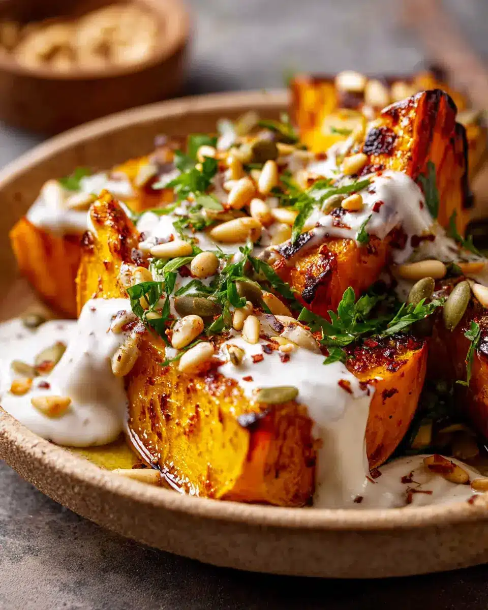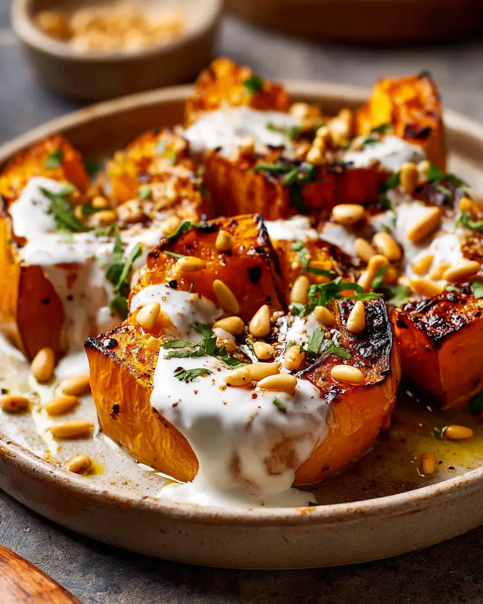 Roasted Pumpkin with Yogurt Sauce and Pine Nuts