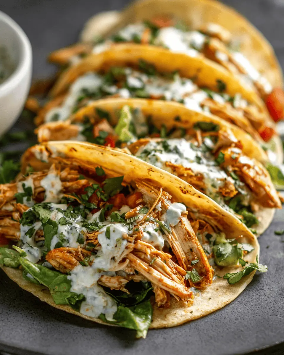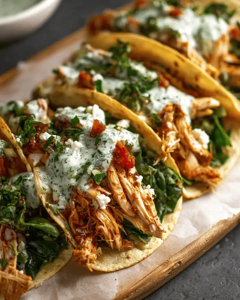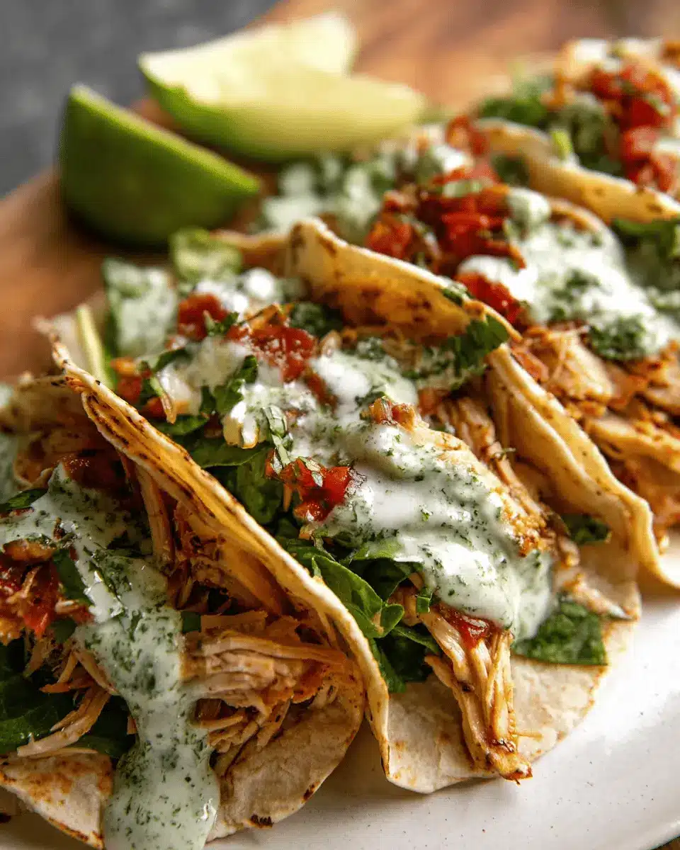 Shredded Chicken Tacos with Creamy Chimichurri Sauce