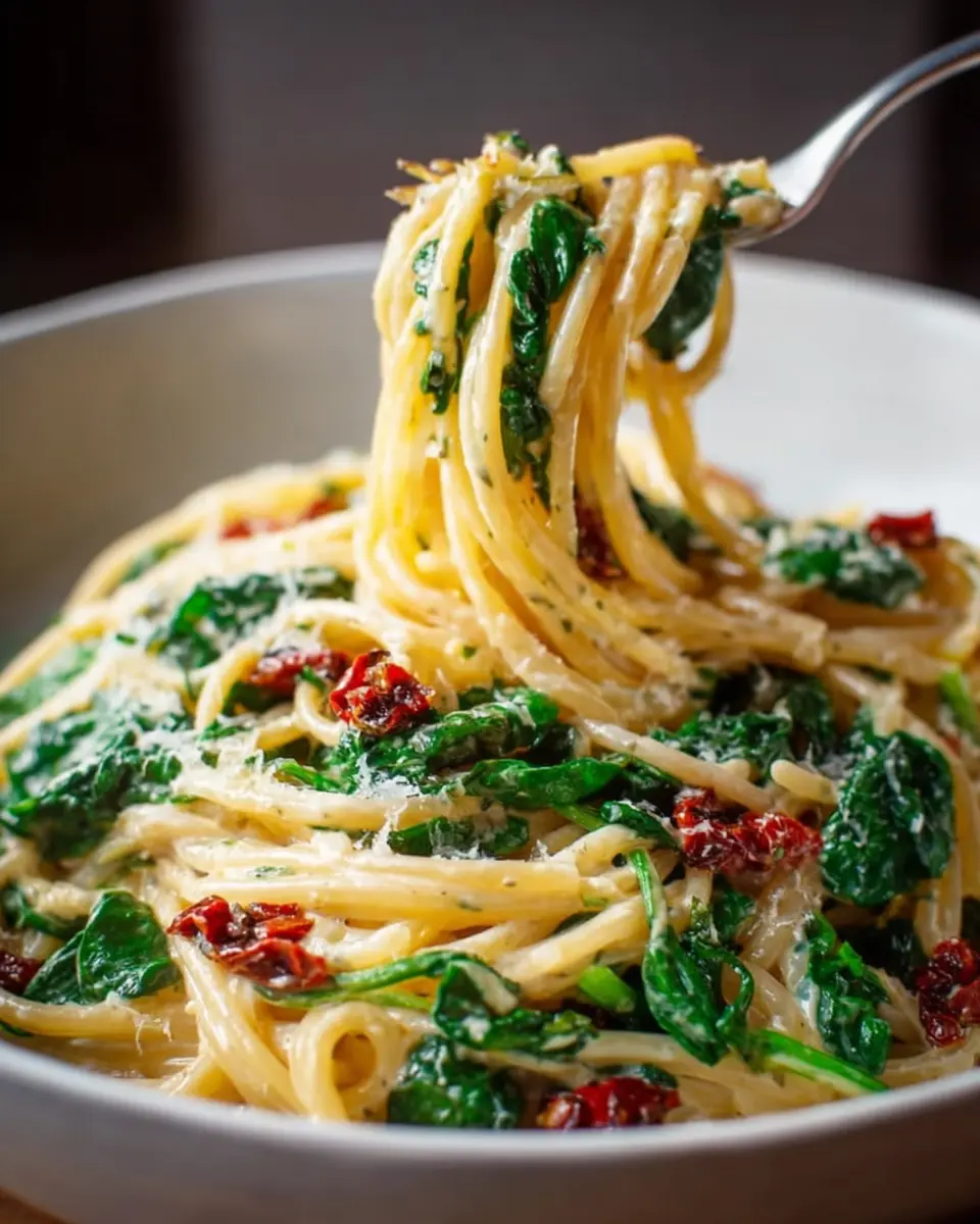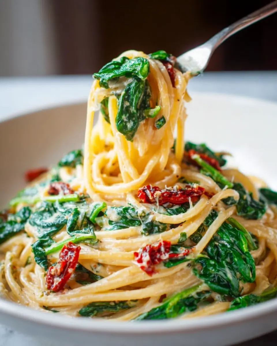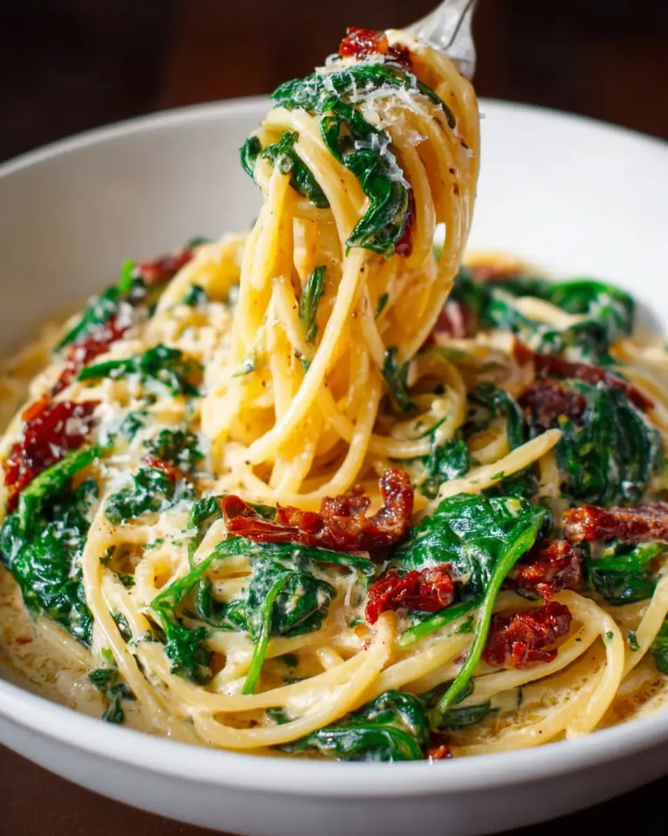 Spaghetti Spinach with Sun-Dried Tomato Cream Sauce Recipe