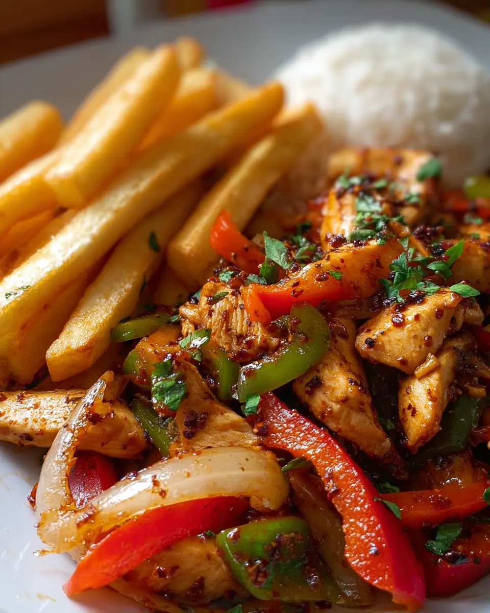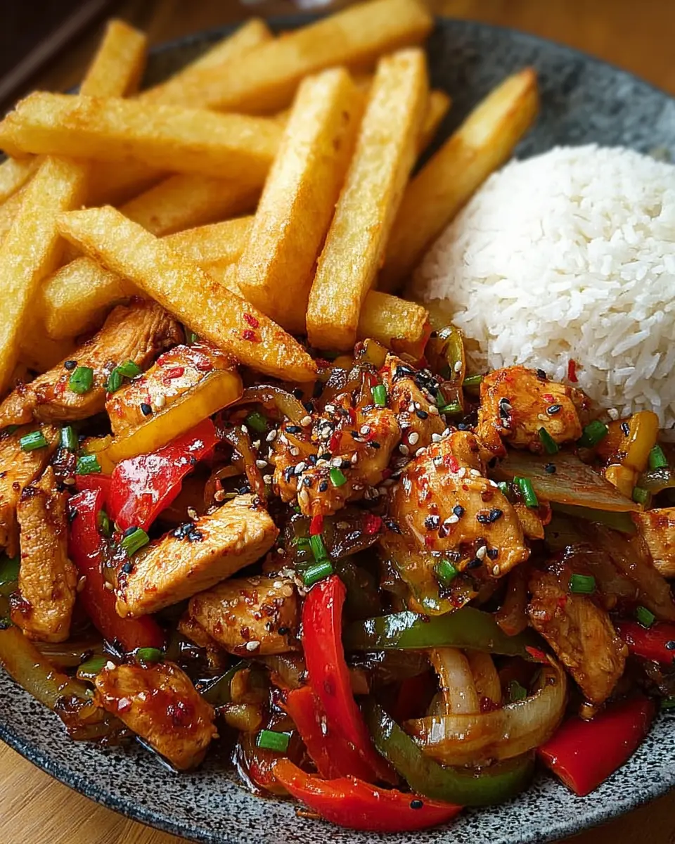 Spicy Chicken Pepper Stir-Fry with Crispy Fries